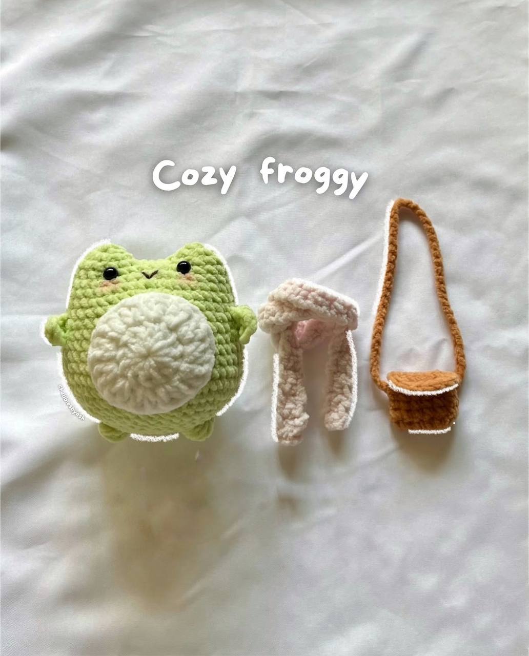 Милая вязаная лягушка - брелок. В комплекте съёмная сумочка и шарфик