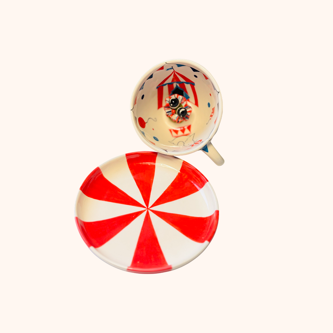 Чайная пара с лягушонком-клоуном и блюдцем- карамелькой