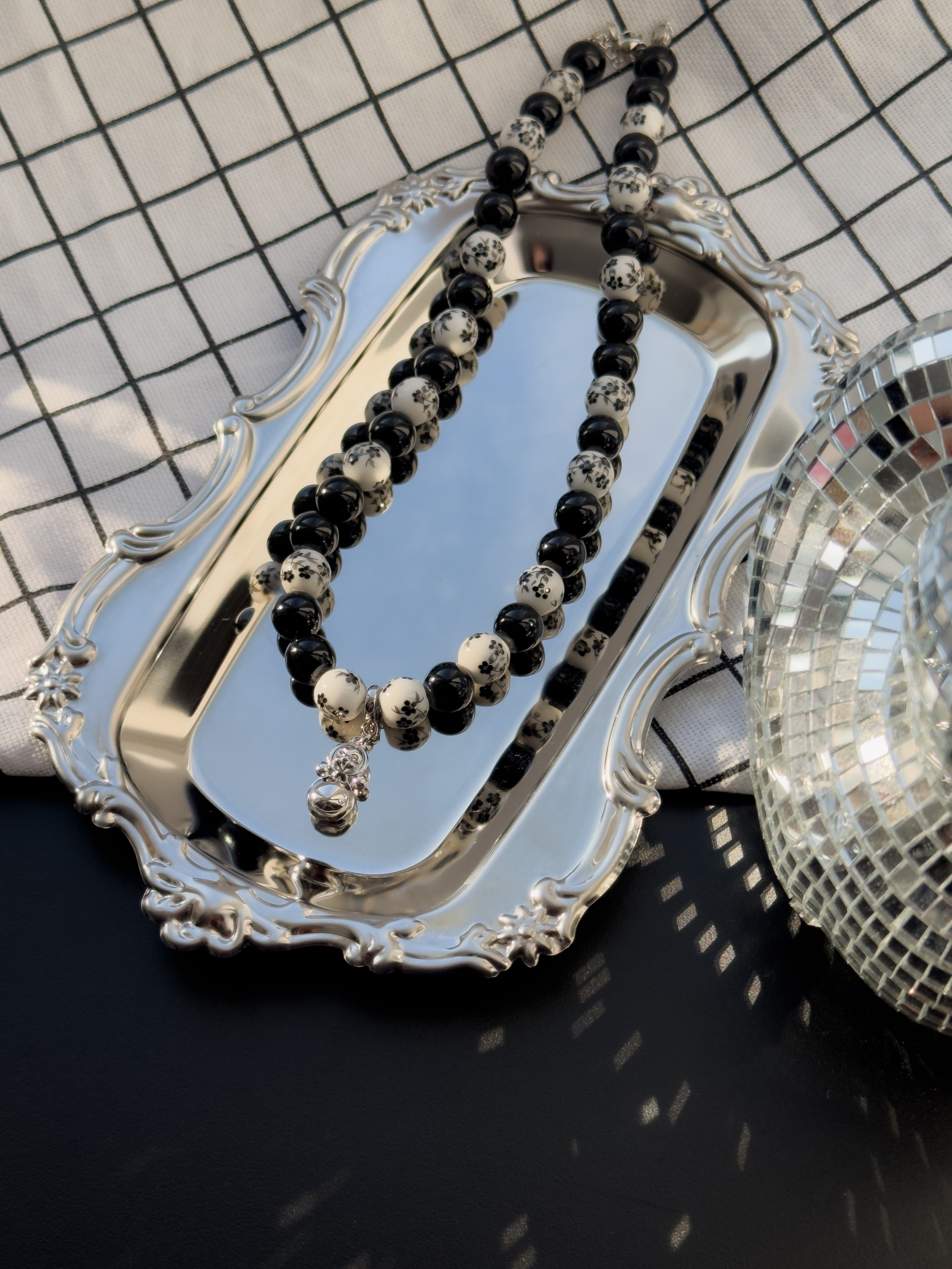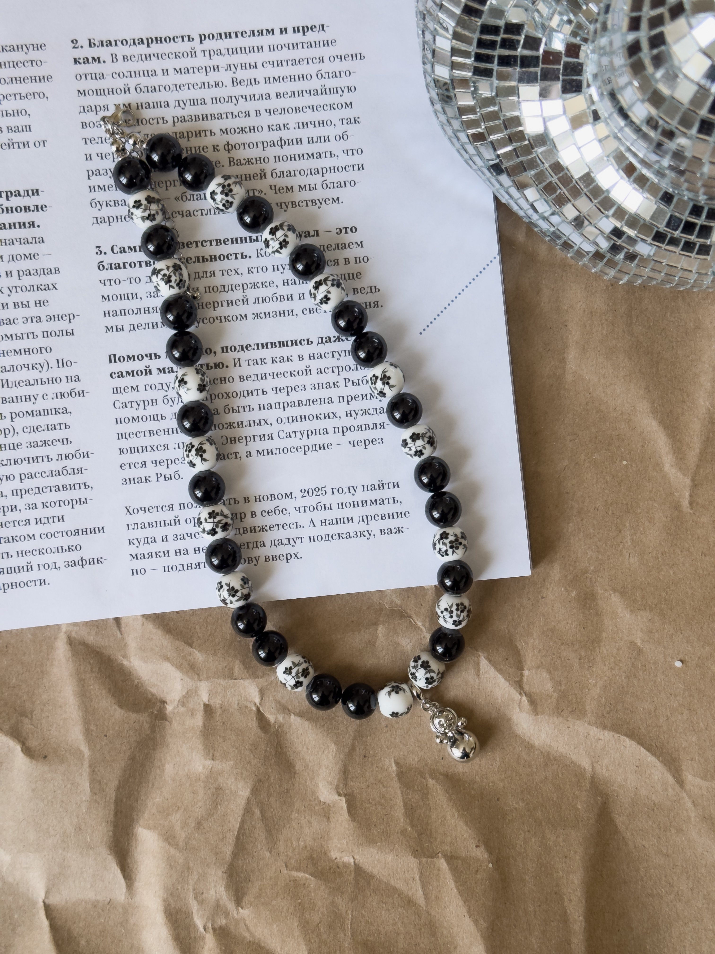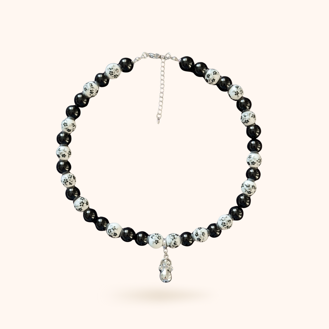Чокер ручной работы в русском стиле с милейшей неваляшкой. Бусины из керамики и агата.