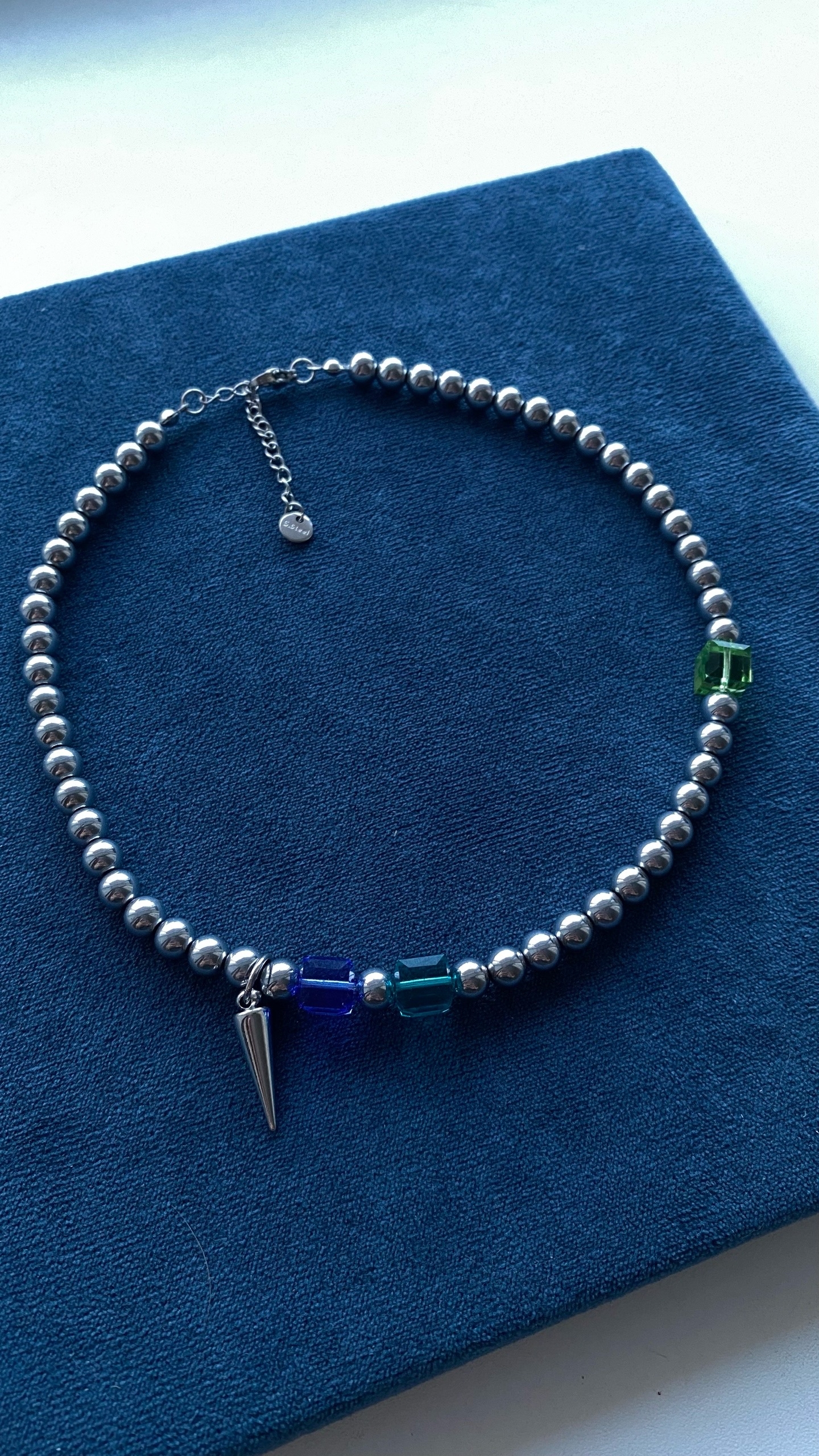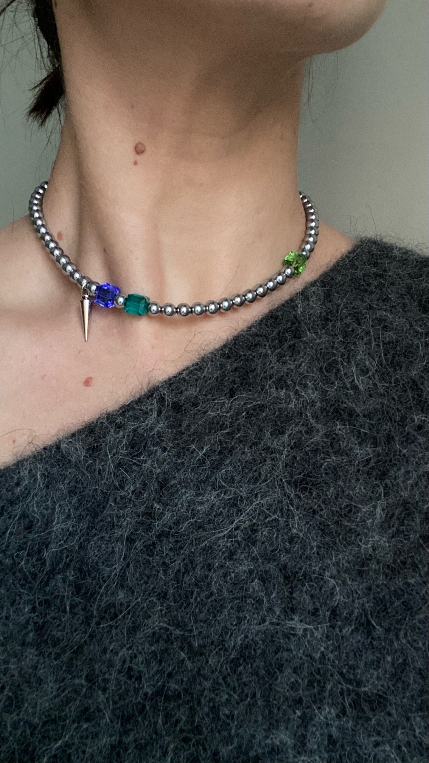 Асимметричный чокер из гематита, кристаллами Сваровски и шипом.
