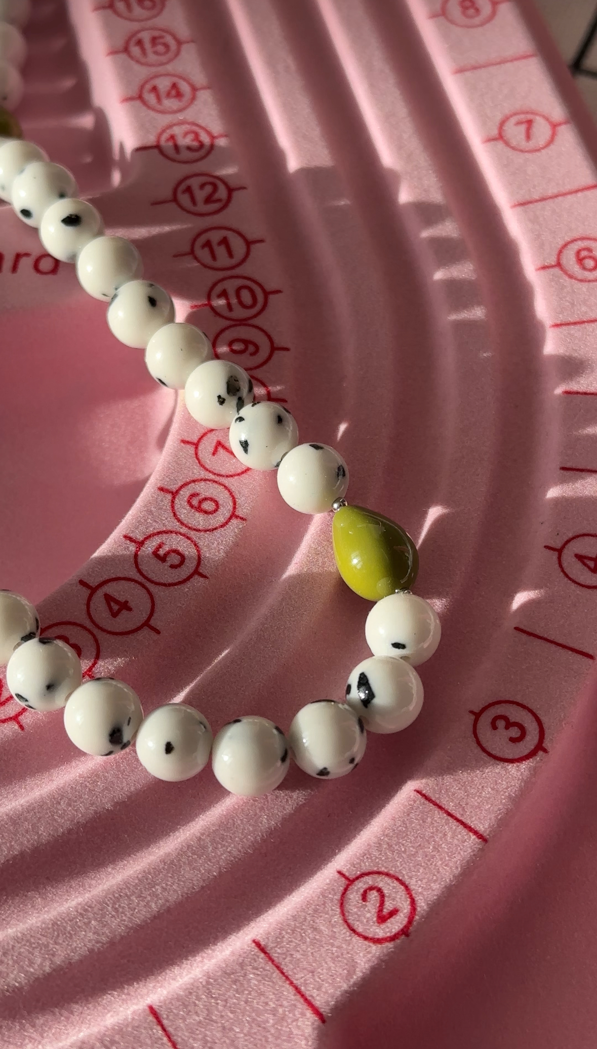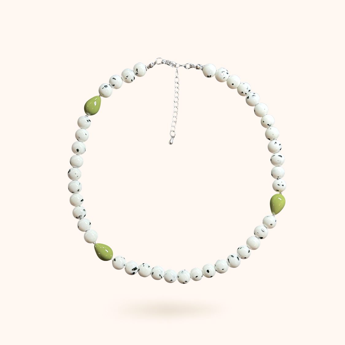 Чокер из милейших пятнистых бусинок с яркими акцентами в виде оливок. Пятнистые бусинки - материал говлит.