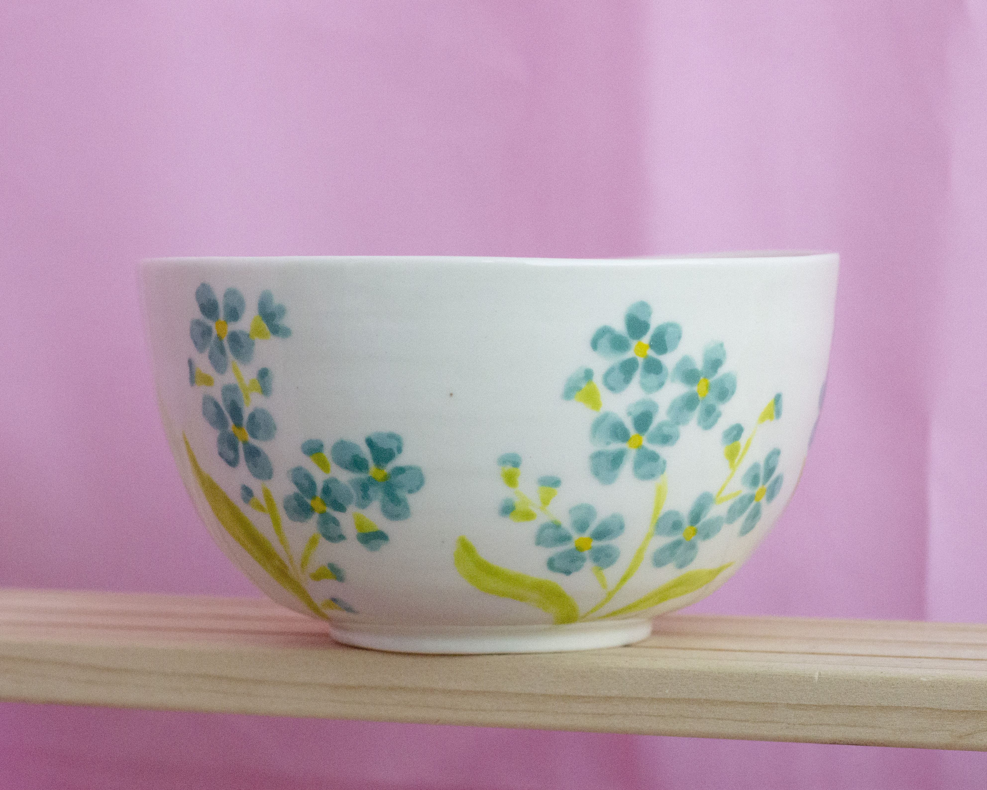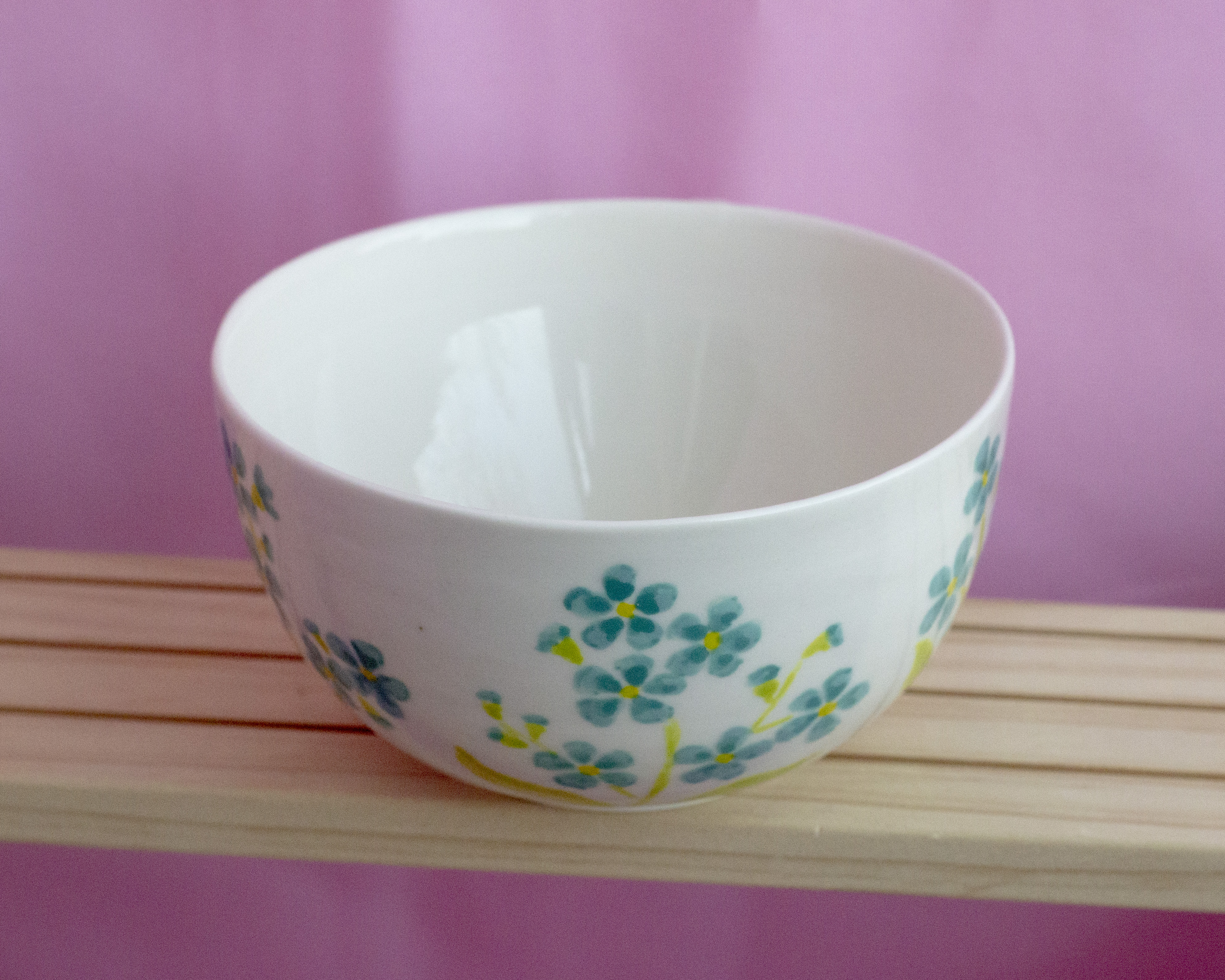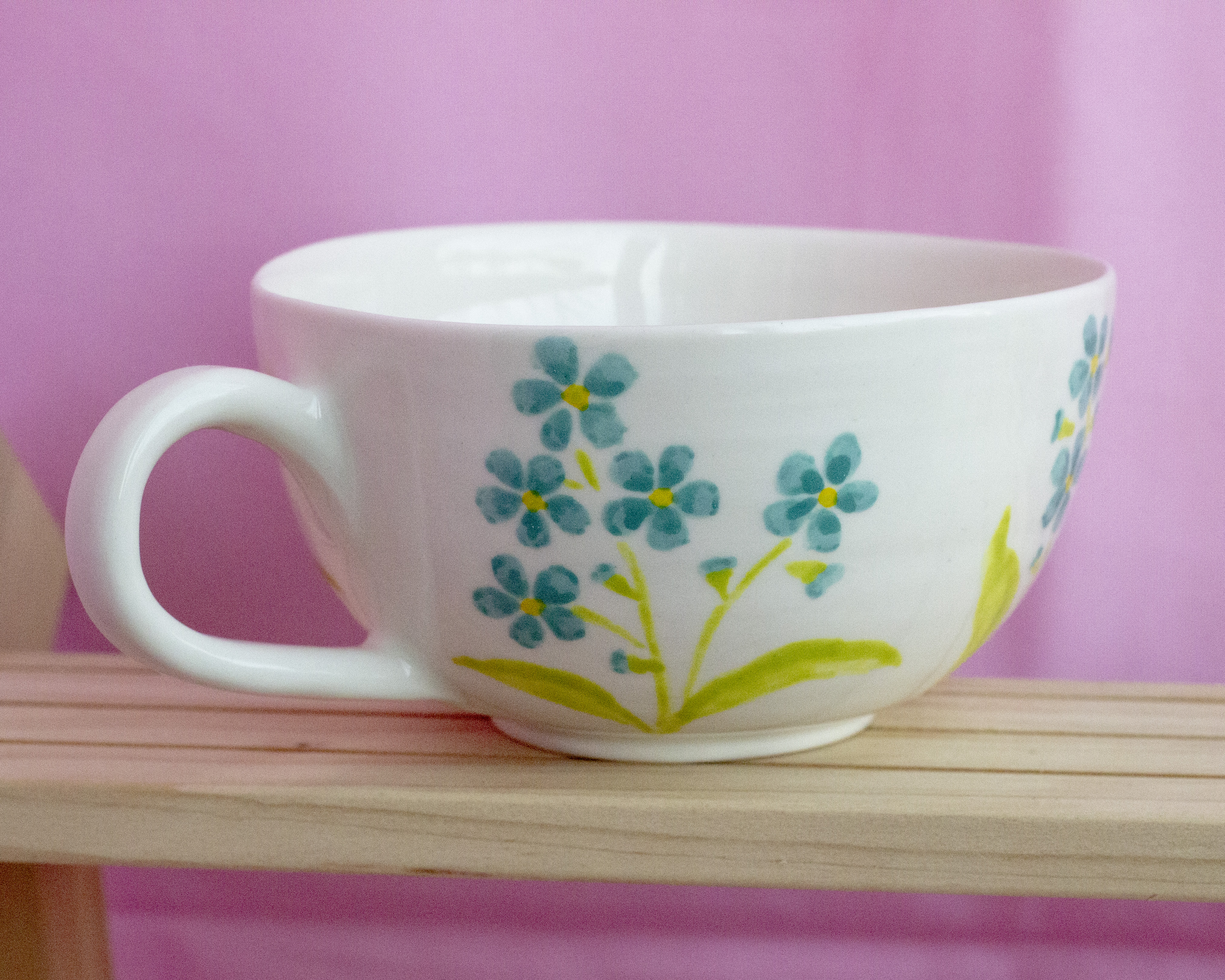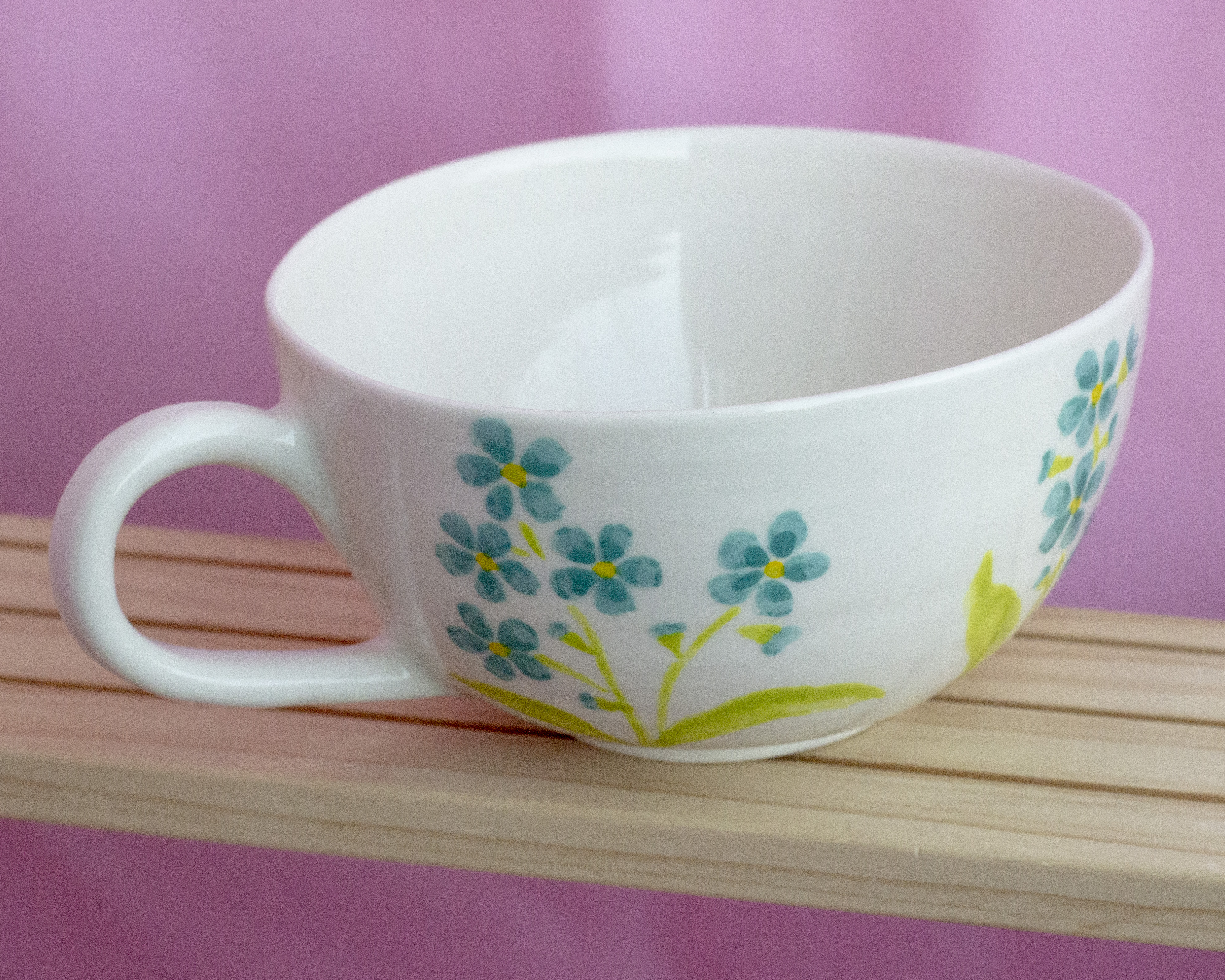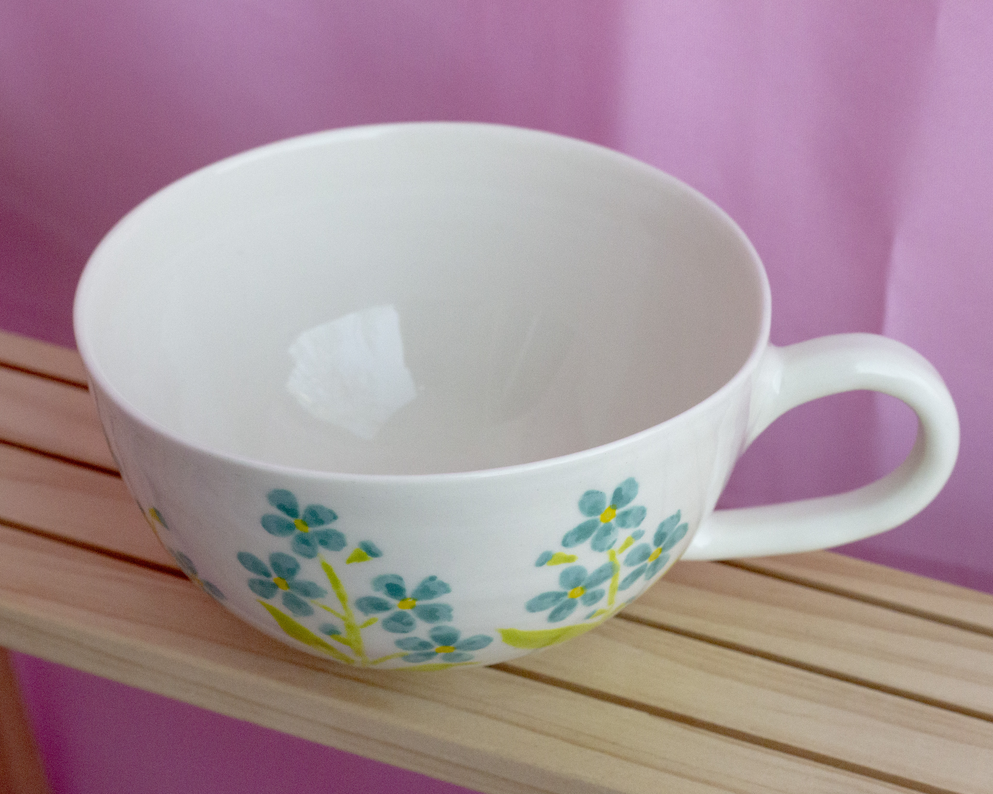 Фарфоровая кружечка ручной работы. Сделана за гончарным кругом, расписана подглазурными красками, сверху покрыта прозрачной глазурью.