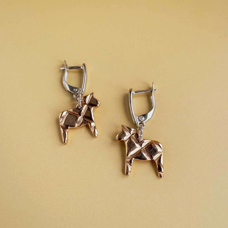 Стильные и лаконичные серьги для тех, кто ценит детали. Лошадки отлиты из бронзы, швензы покрыты гипоаллергенным родием — комфортно носить каждый день.