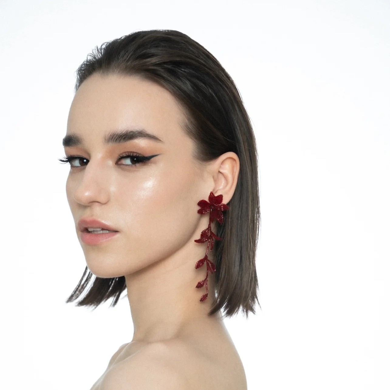 Особенность данного изделия - ручная работа, которая занимает более 10 часов кропотливого труда, а на обучение при этом уходит несколько недель. Используйте ювелирный бисер, самую тонкую английскую иголку и приготовьте ее, мастер очертания формы, количества листьев и стебельков индивидуально, неизменными остаются только схема, цвет и размеры стебельков. Каждая пара получается уникальной, своего рода произведением искусства.