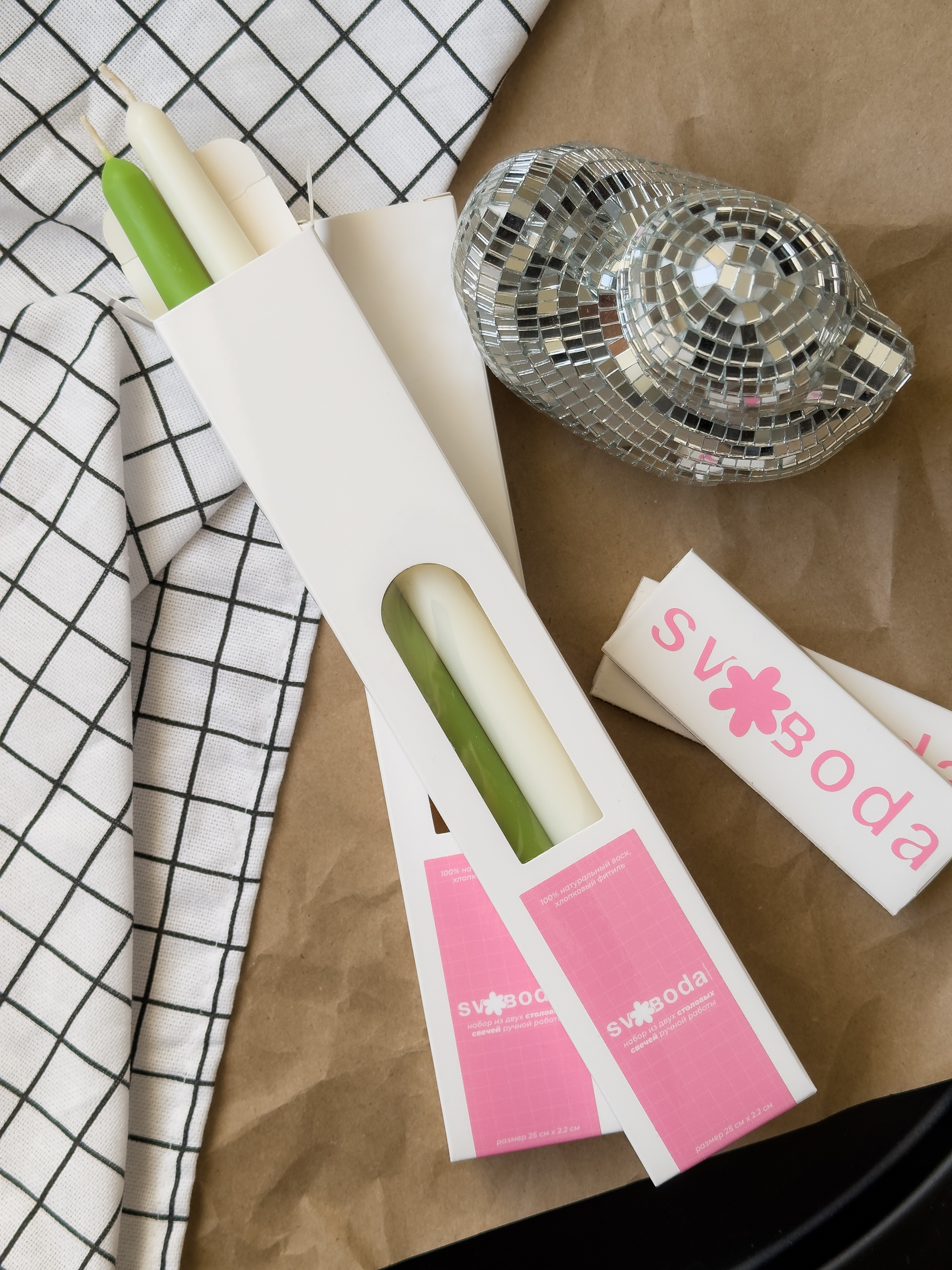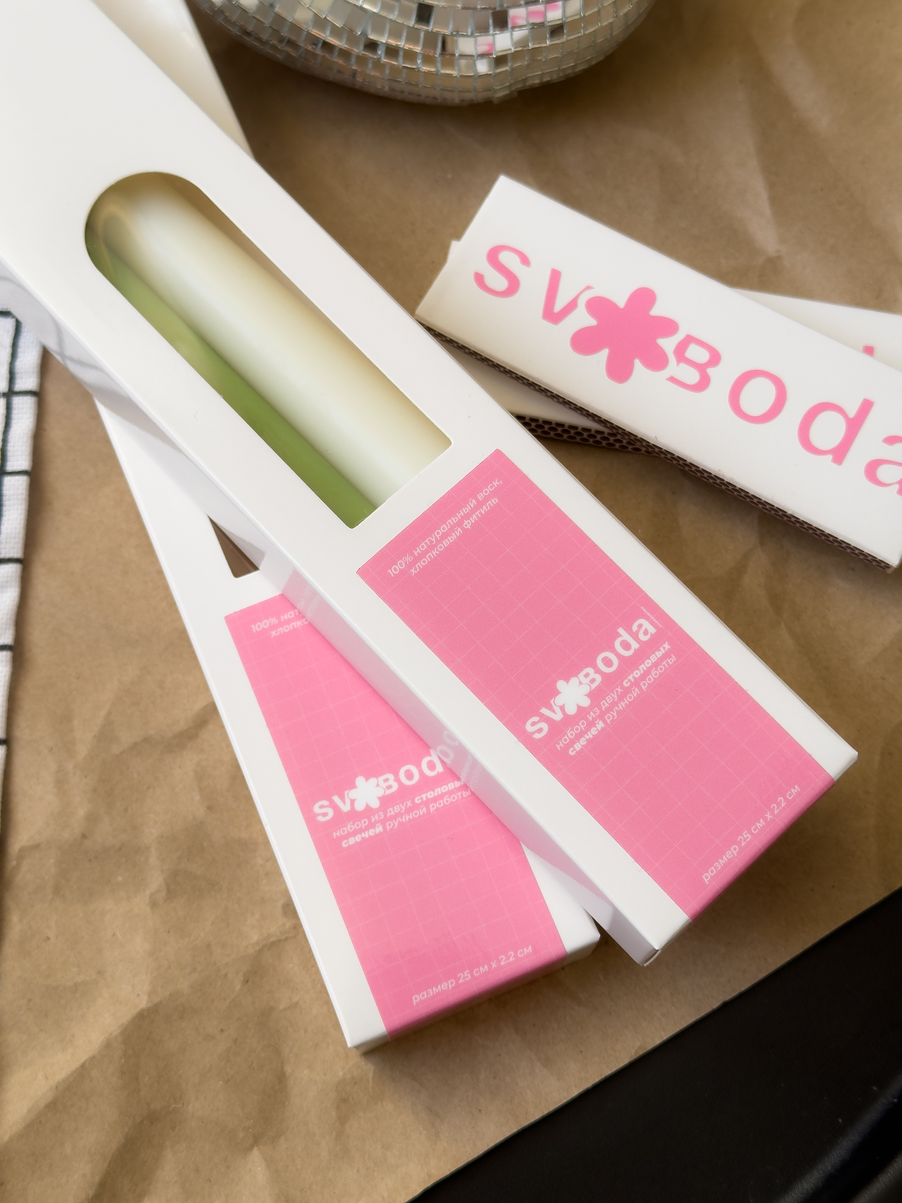 Столовые свечи ручной работы из натурального воска, которые станут украшением пространства. Также для атмосферы и настроения добавлен аромат «просекко & гуава» - искристые и колкие пузырьки просекко взрываются нотами сладкой гуавы в сочетании с сочной мякотью грейпфрута и ананаса.