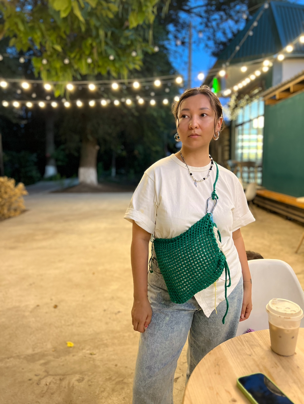 Сумка-сетка вязаная с хлопковым мешком в комплекте