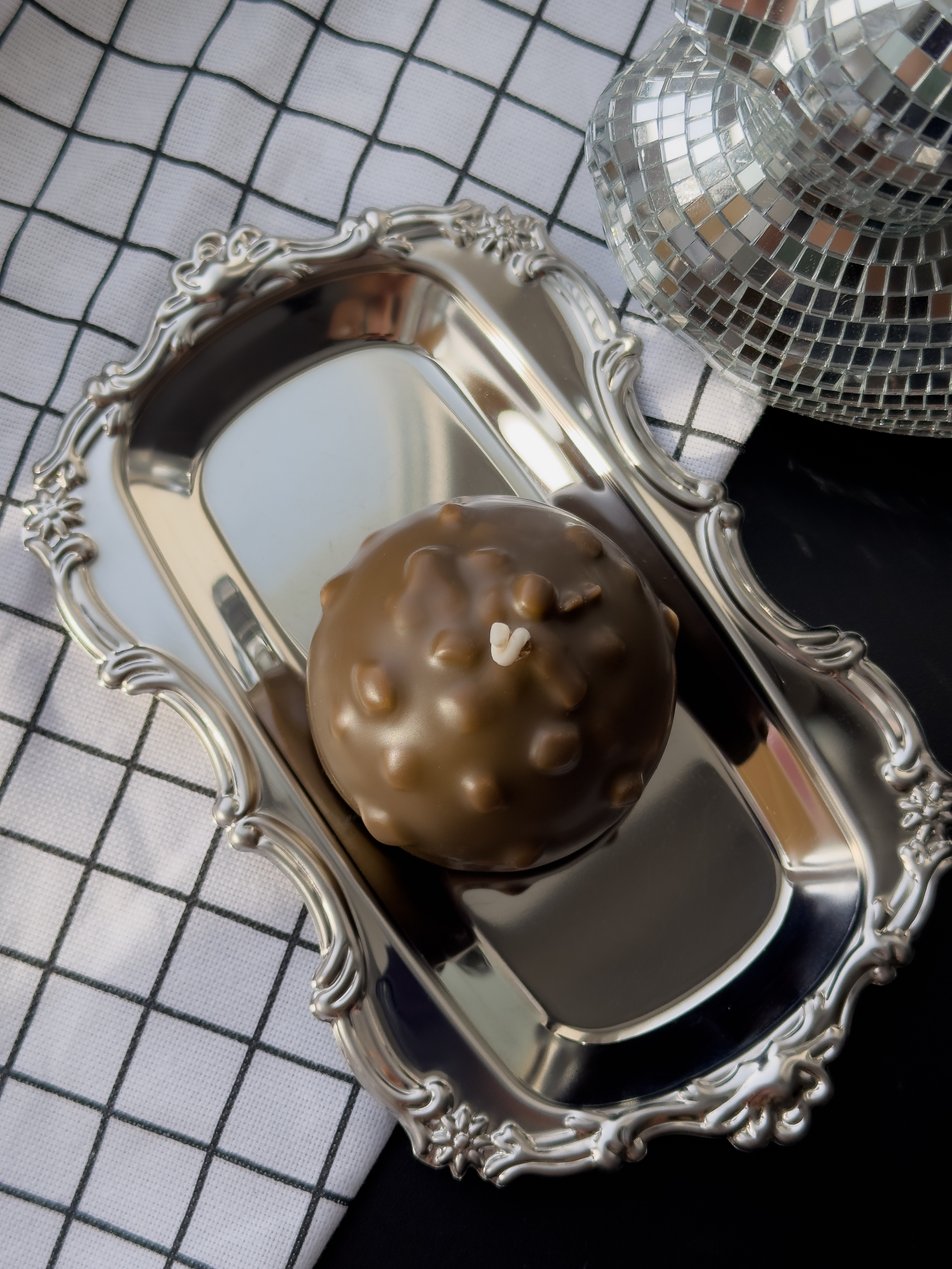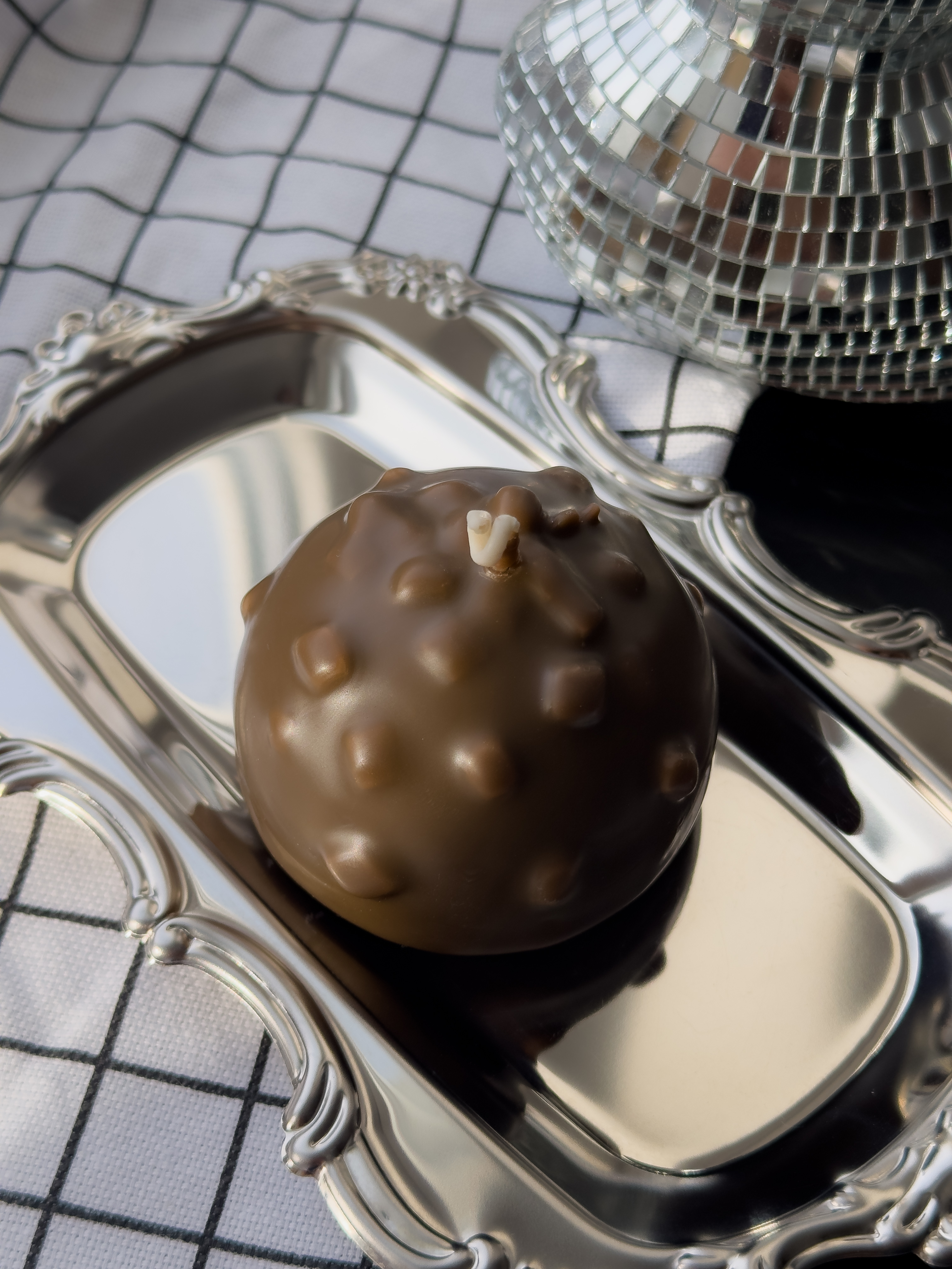 Невероятно красивая свеча ручной работы в виде конфеты ferrero rocher из пчелиного воска.