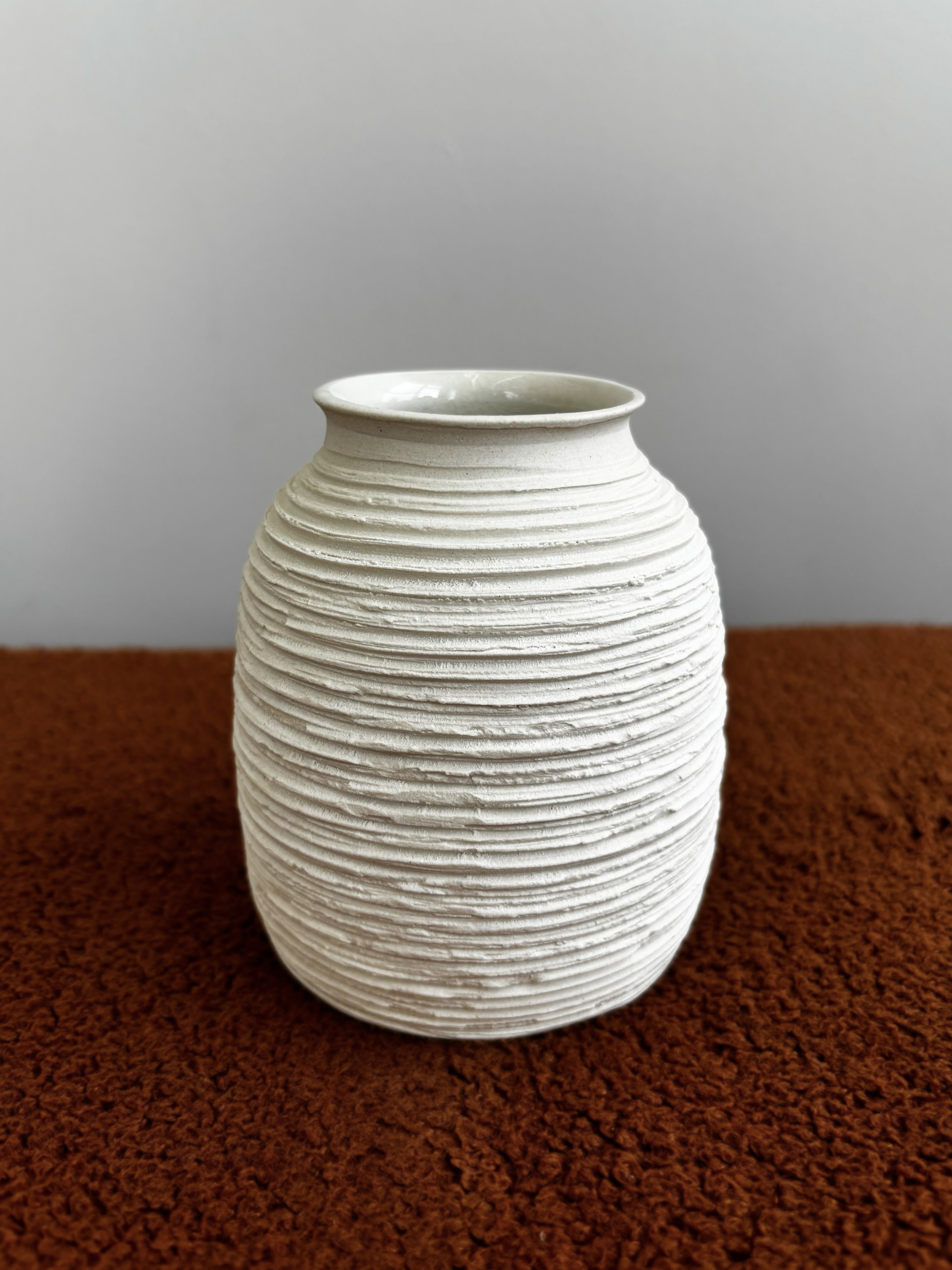 Каждая ваза создаётся вручную, поэтому линии и текстура всегда немного отличаются — двух полностью одинаковых изделий не существует.
