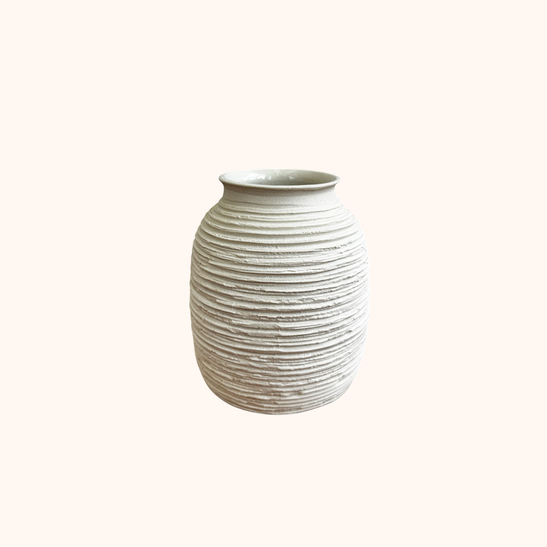 Эта форма построена вокруг тактильности: поверхность создана из множества тонких линий, которые мягко переливаются на свету и делают вазу выразительной даже без наполнения. Теплый природный оттенок легко сочетается с живыми цветами, сухими композициями или может стать органайзером для ручек.