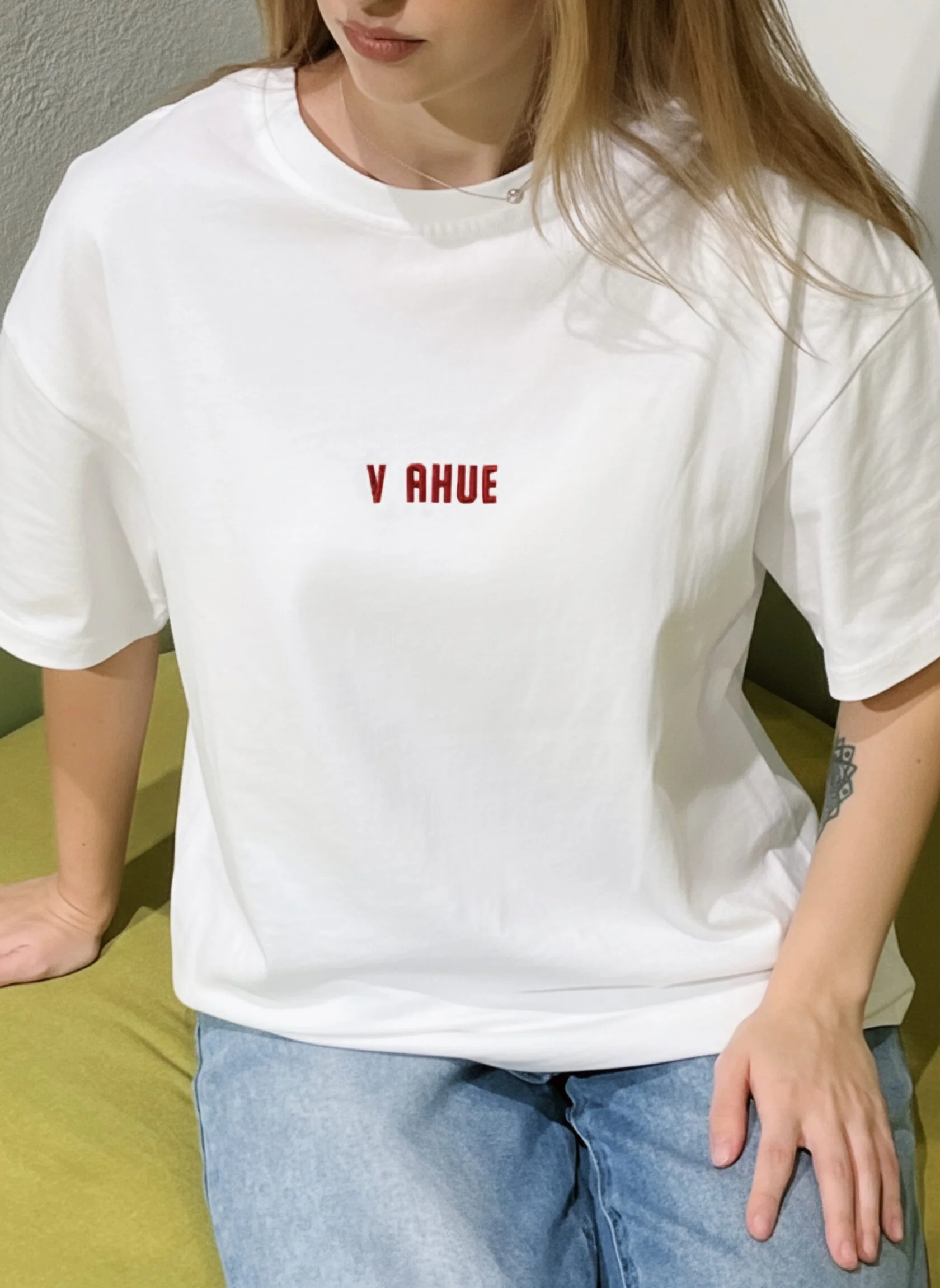Футболка с вышивкой «V A*UE» - если вы вспоминаете себя или близкого человека, то мы вас понимаем. Все мы иногда находимся в этом загадочном месте.