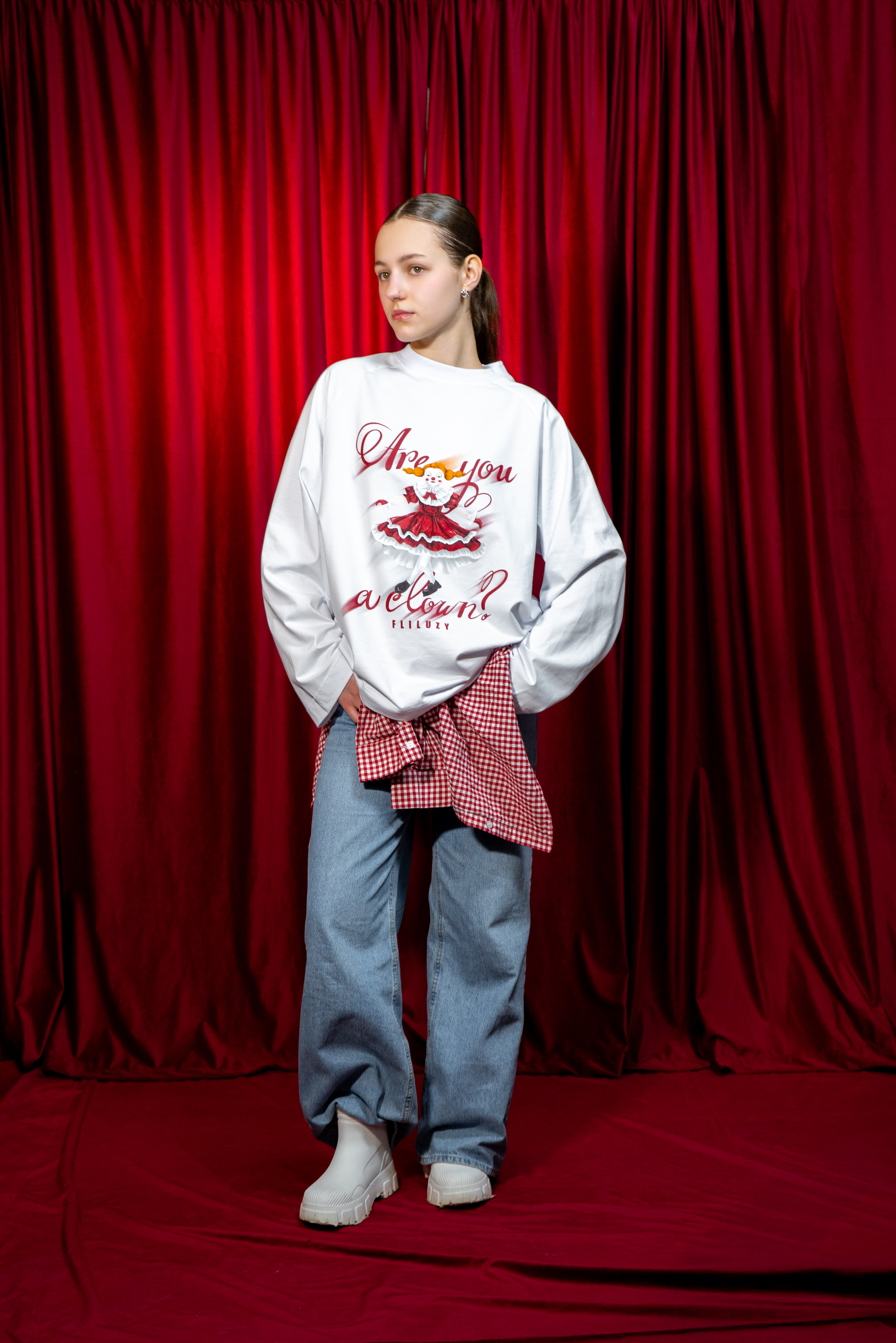 Этот принт - не про насмешку, а про принятие. Про то, что не стыдно быть смешным, странным или нелепым. В этом и есть ты. В этом и есть жизнь. Лонгслив для тех, кто не боится быть собой и относится к миру с иронией.