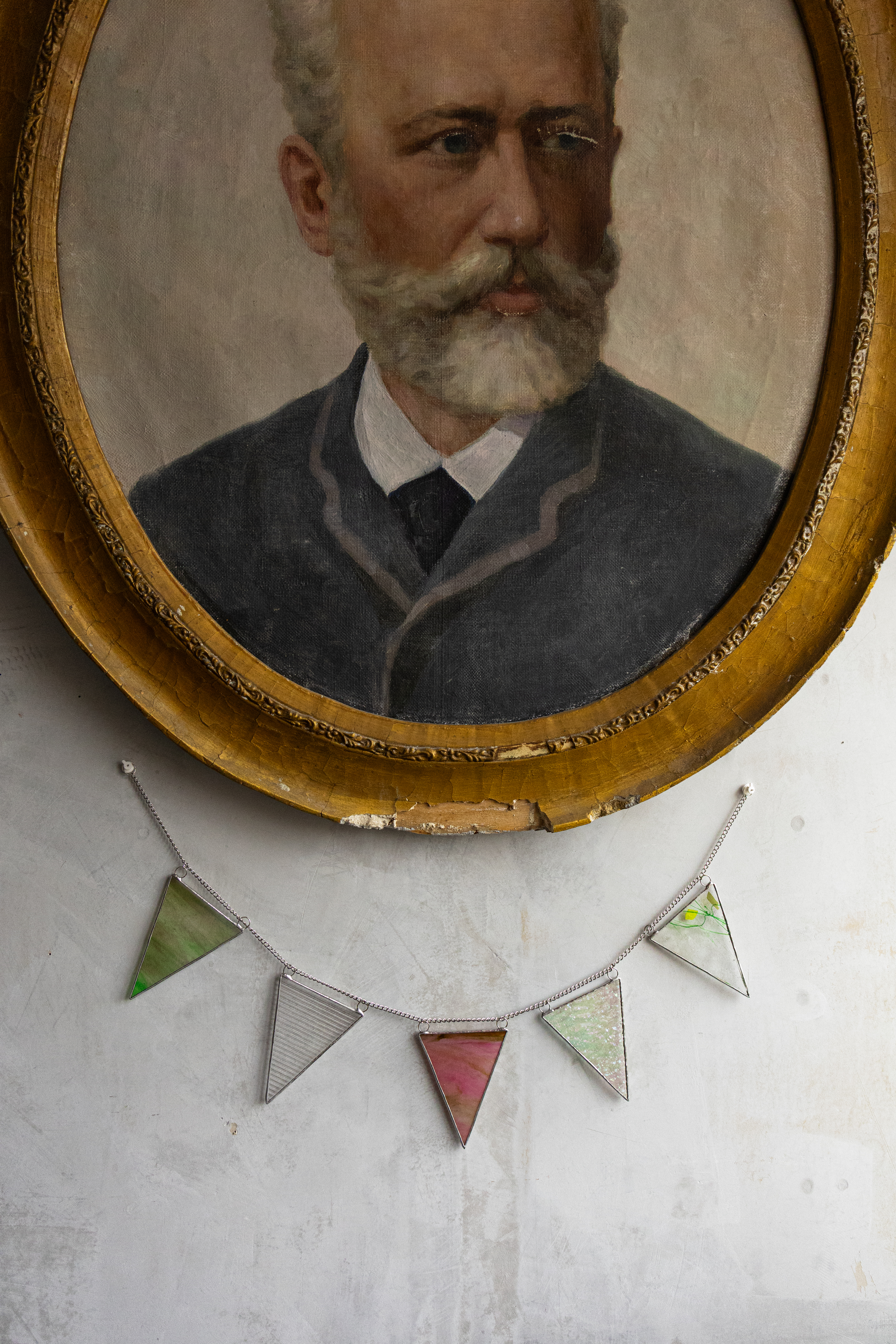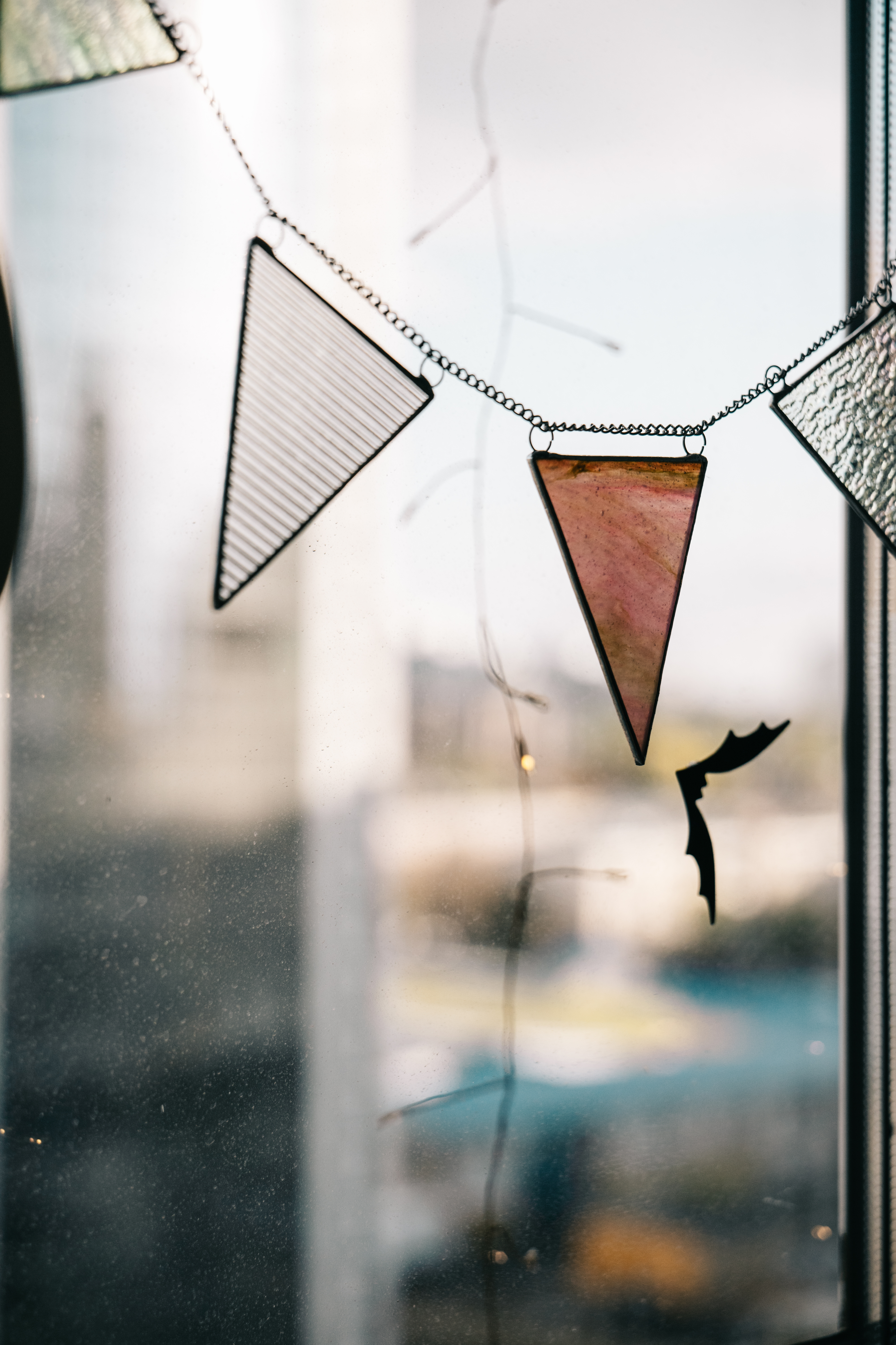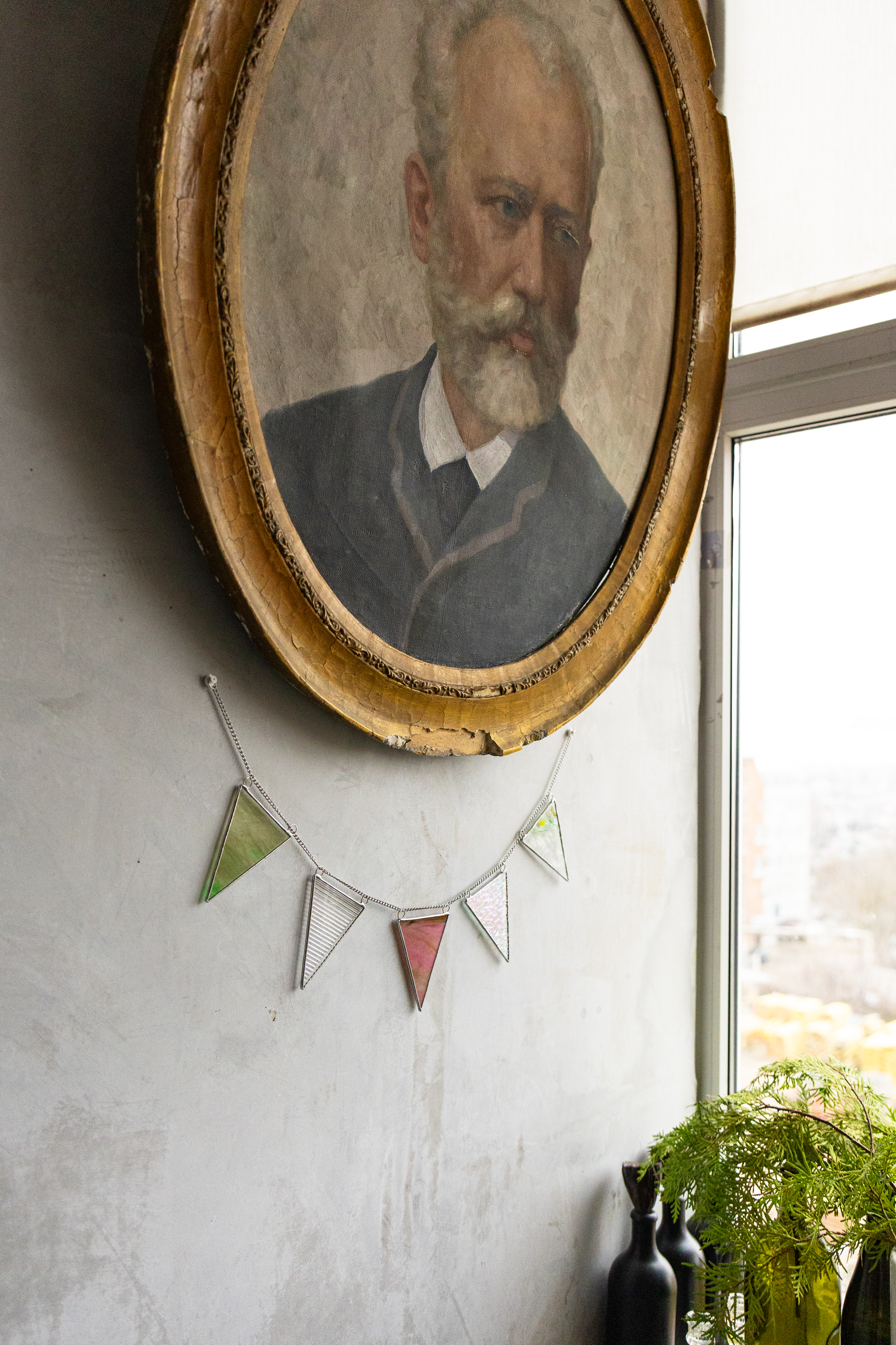 Гирлянда-флажки из цветного стекла, изготовленная в витражной технике Тиффани.
