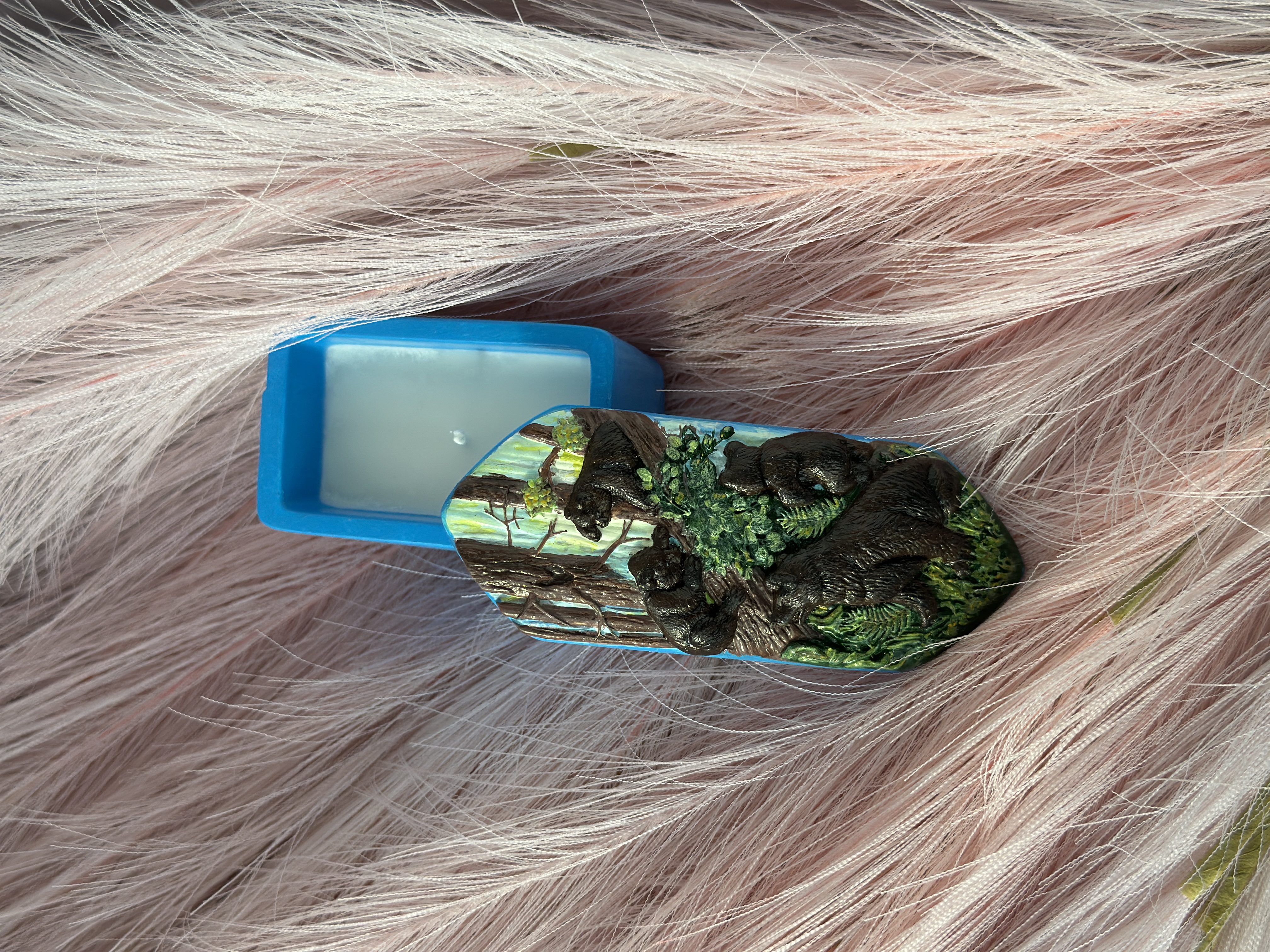 Тёплая ностальгия, знакомая с детства, воплощённая в уютной детали интерьера. Свеча-шкатулка в форме той самой советской конфеты с мишками сразу переносит в атмосферу праздников, подарков из новогодних пакетов и сладких воспоминаний.