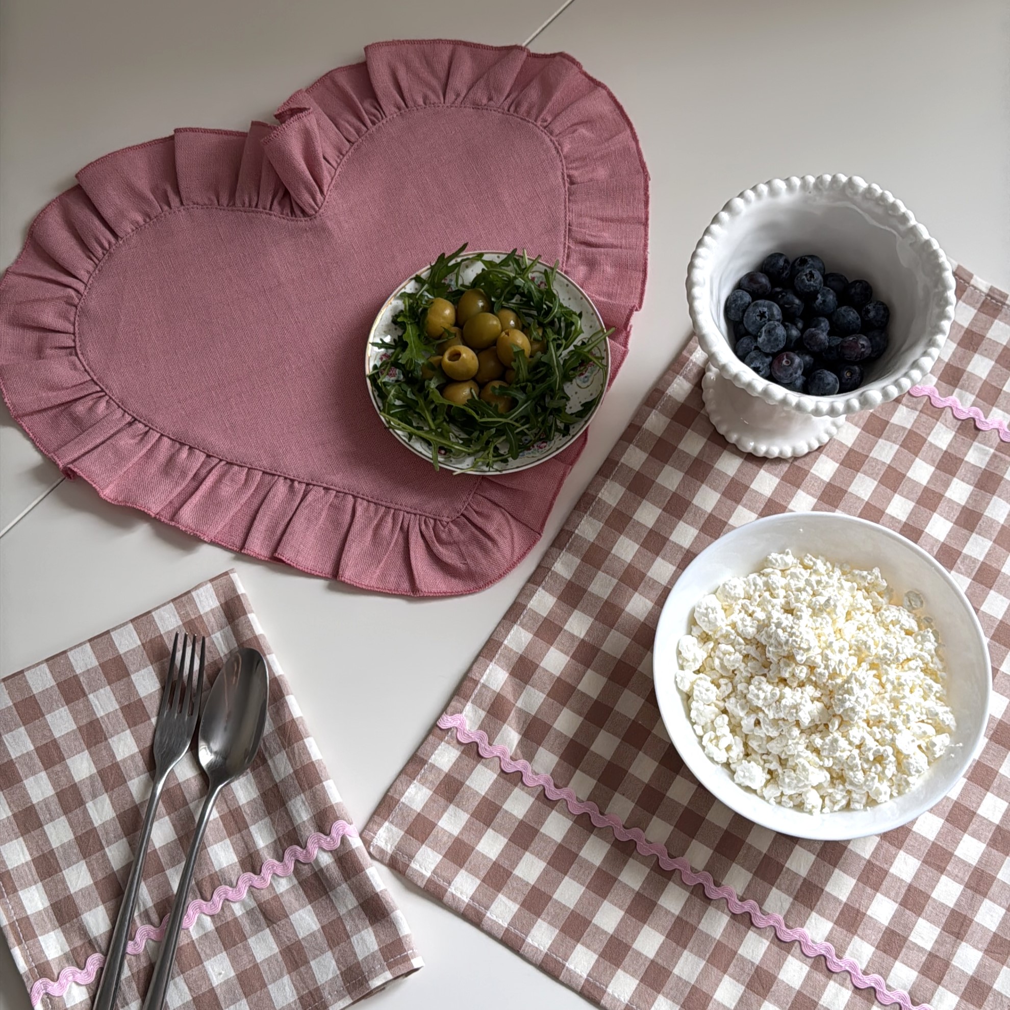 Сервировочные салфетки (плейсматы) в форме сердца с рюшами