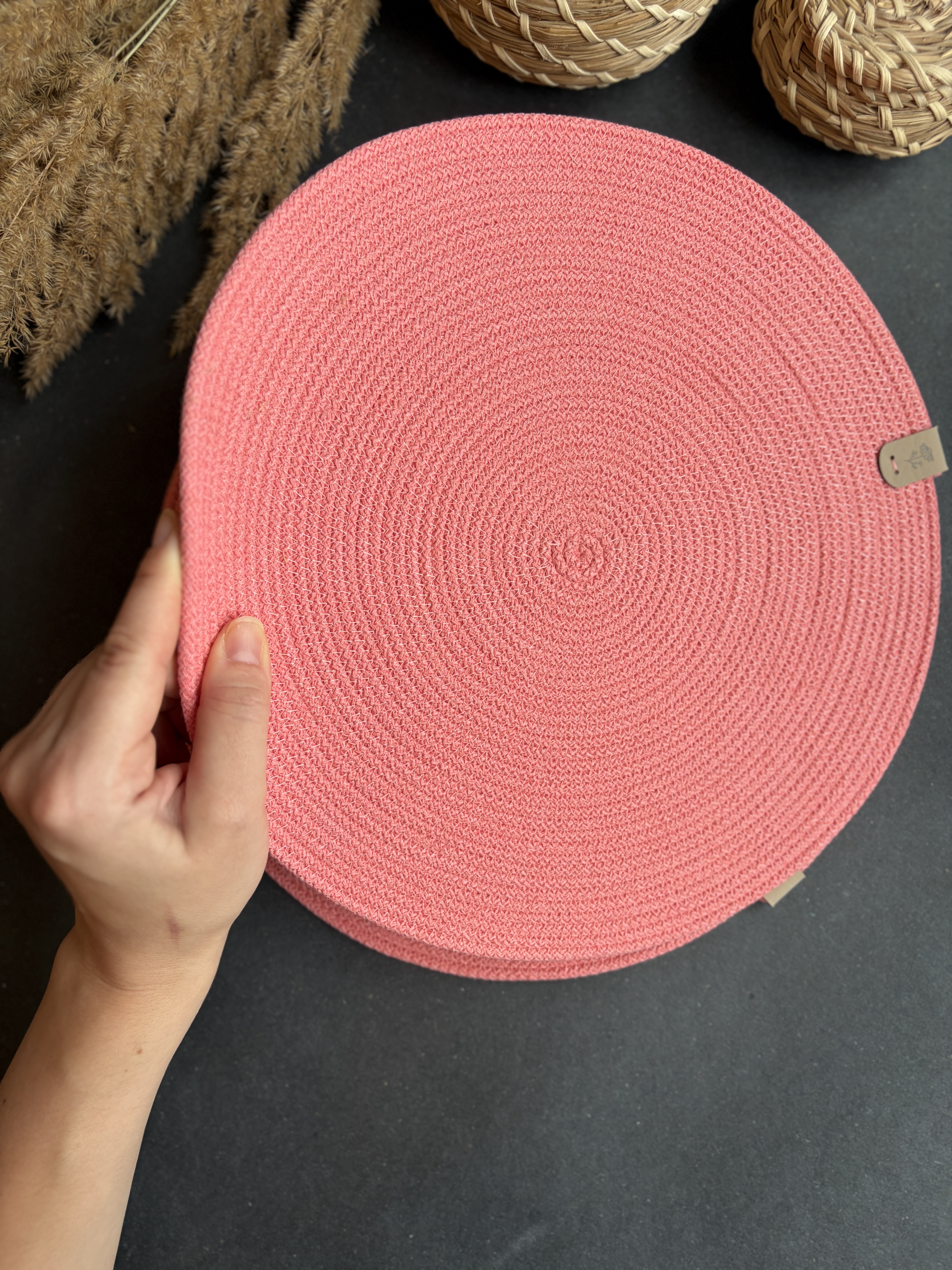 Салфетка плотная за счет того, что она сшита из хлопкового шнура с сердечником.