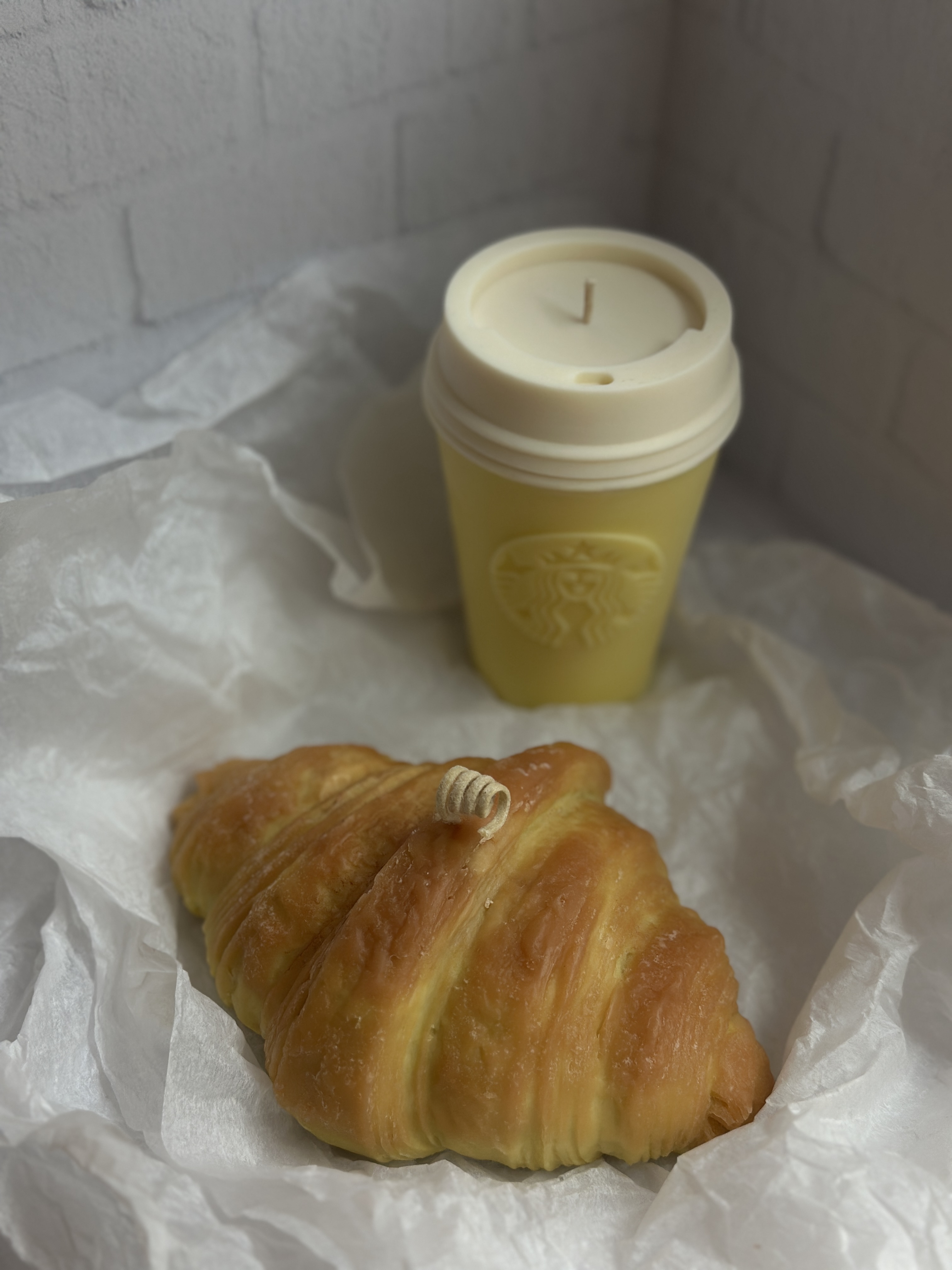 Свеча из пчелиного воска в форме круассана, ручная работа.