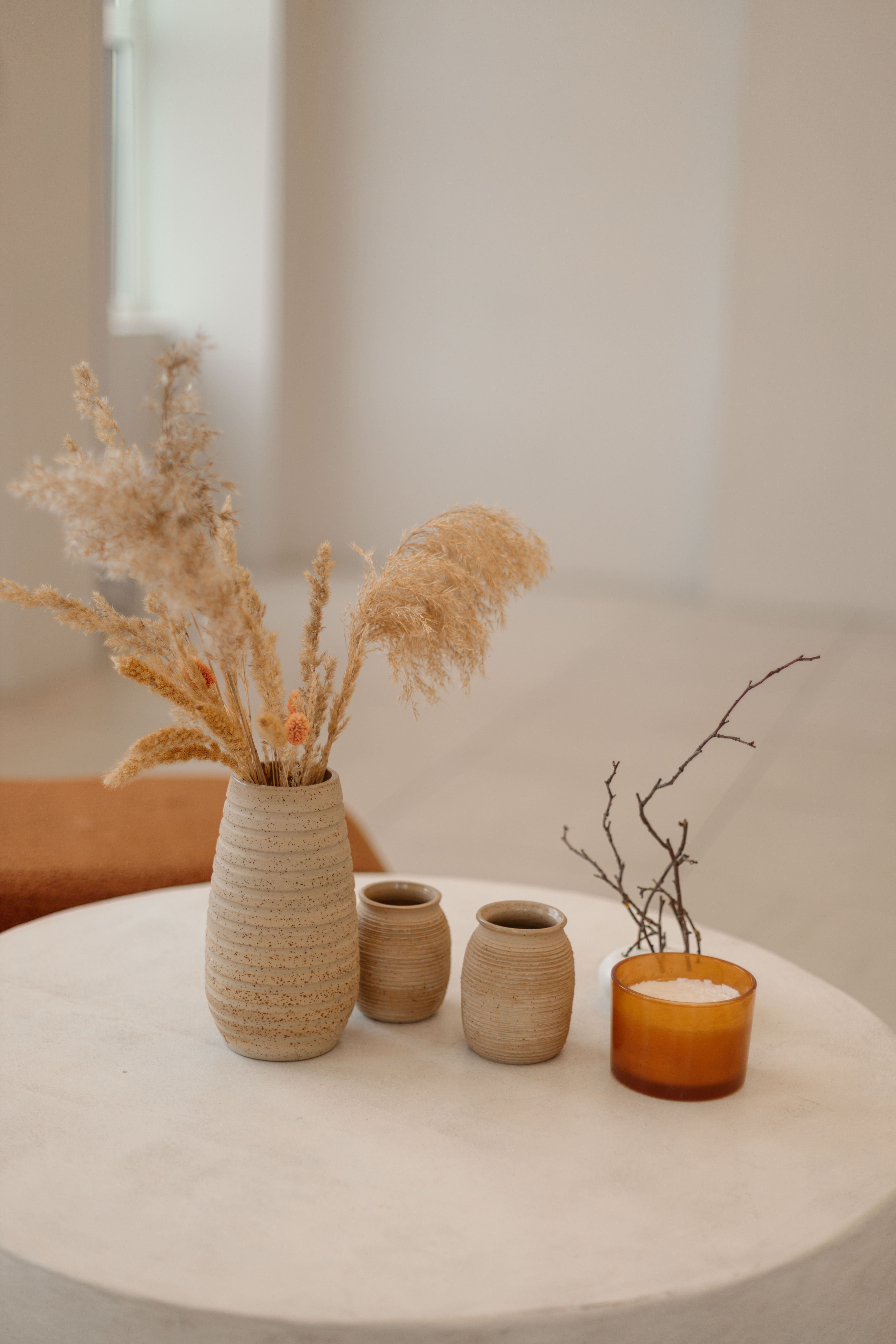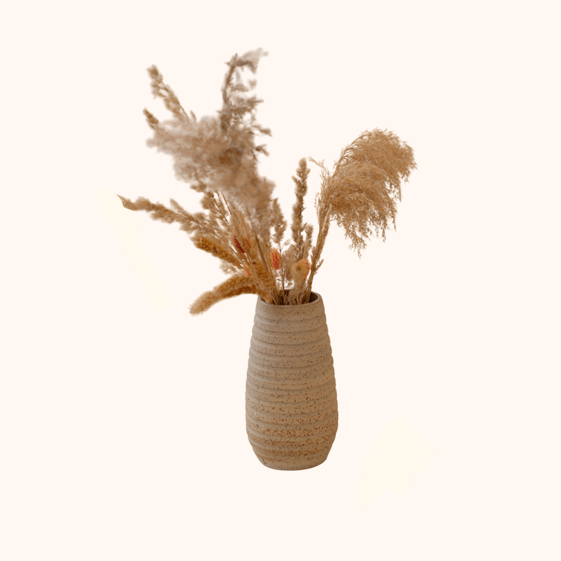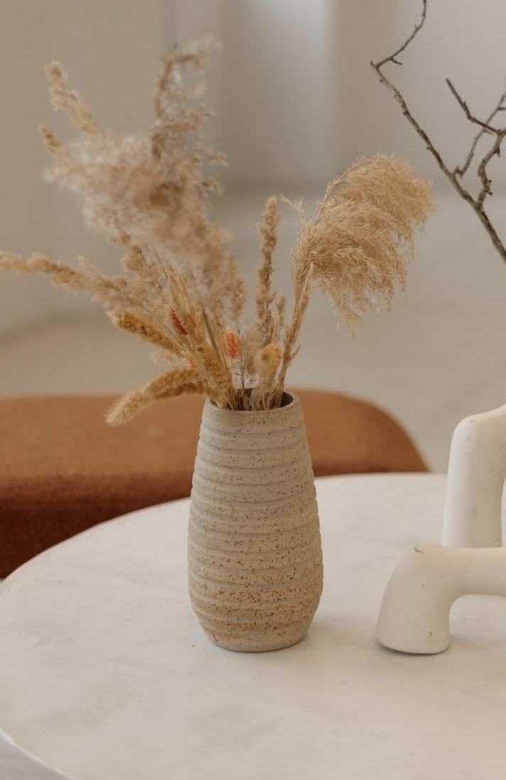 Элегантная ваза из керамики в теплом оттенке с деликатной рельефной текстурой. Лаконичная форма и натуральная палитра делают её универсальным акцентом для современного интерьера — от сканди и минимализма до japandi и бохо.