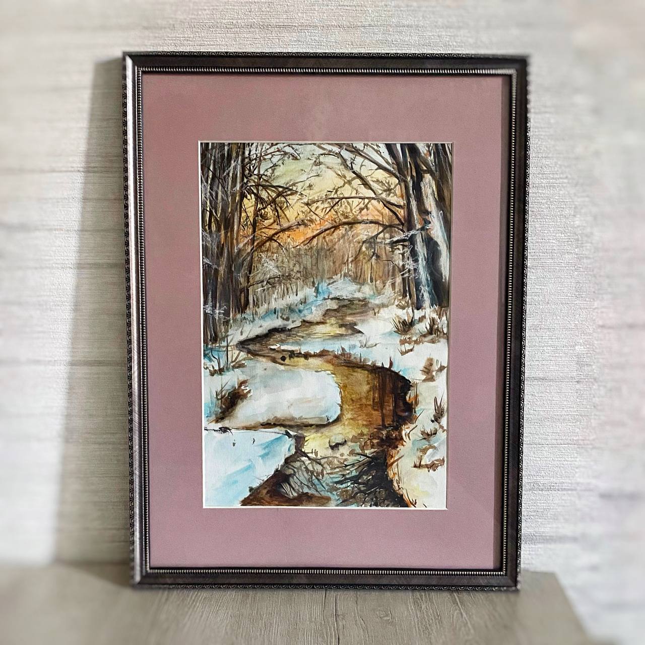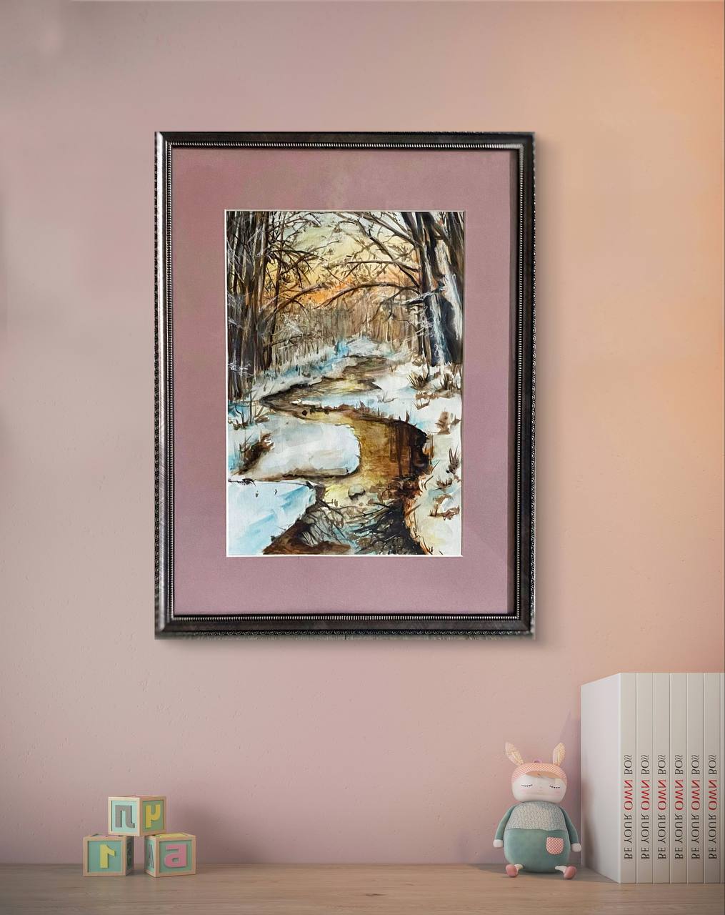 Работа написана на акварельной бумаге, с оборотной стороны картины имеются крепления, рама, стекло .