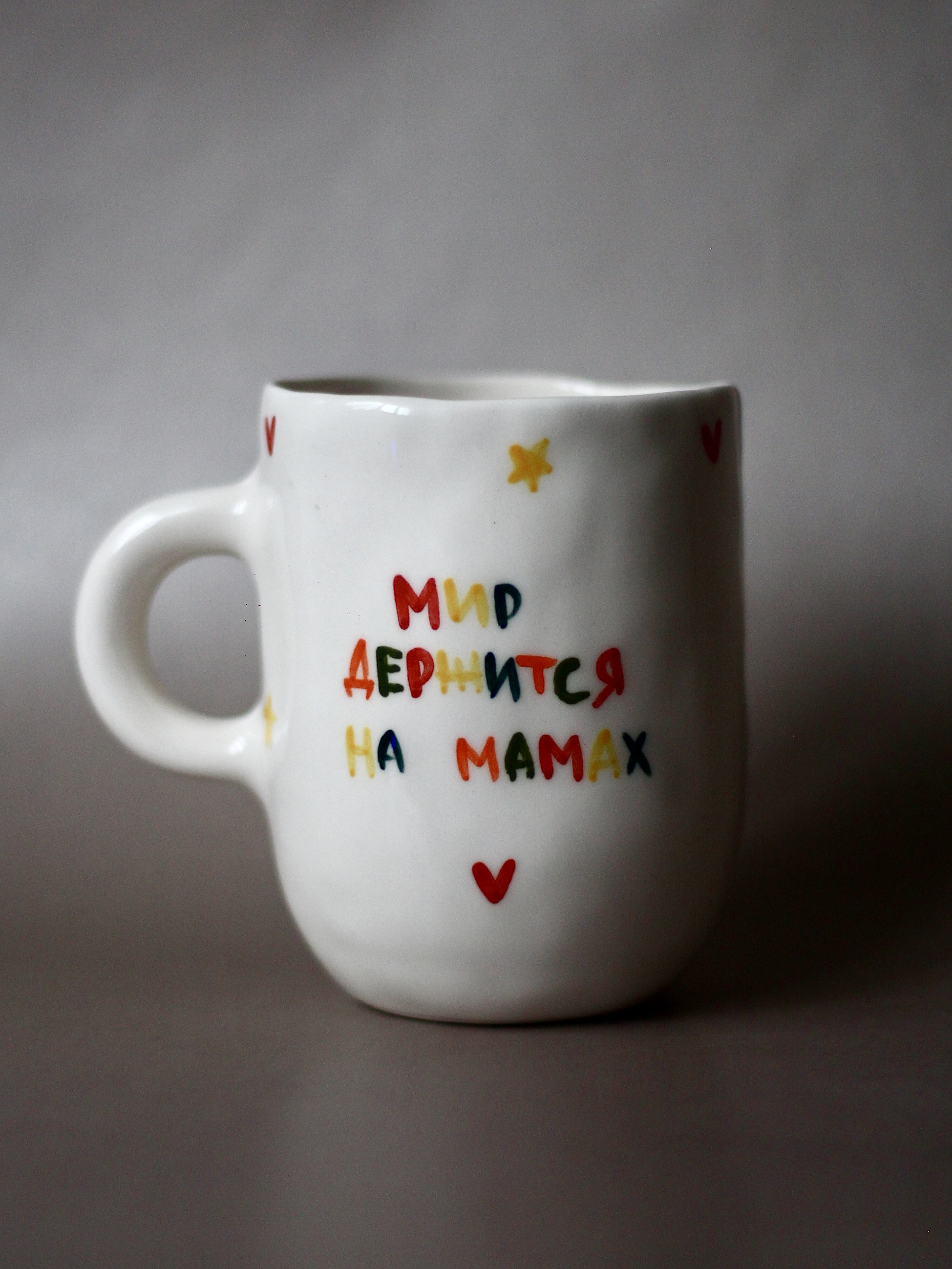 Фарфоровая кружка «МИР ДЕРЖИТСЯ НА МАМАХ» от Temiroff Ceramics