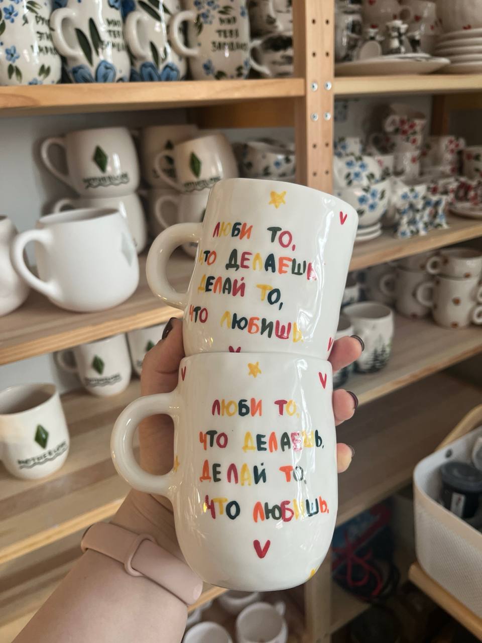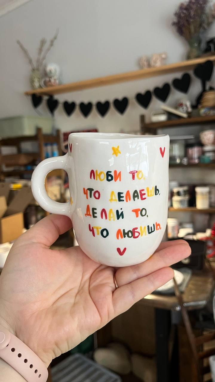 Фарфоровая кружка «ЛЮБИ ТО, ЧТО ДЕЛАЕШЬ. ДЕЛАЙ ТО, ЧТО ЛЮБИШЬ.» от Temiroff Ceramics