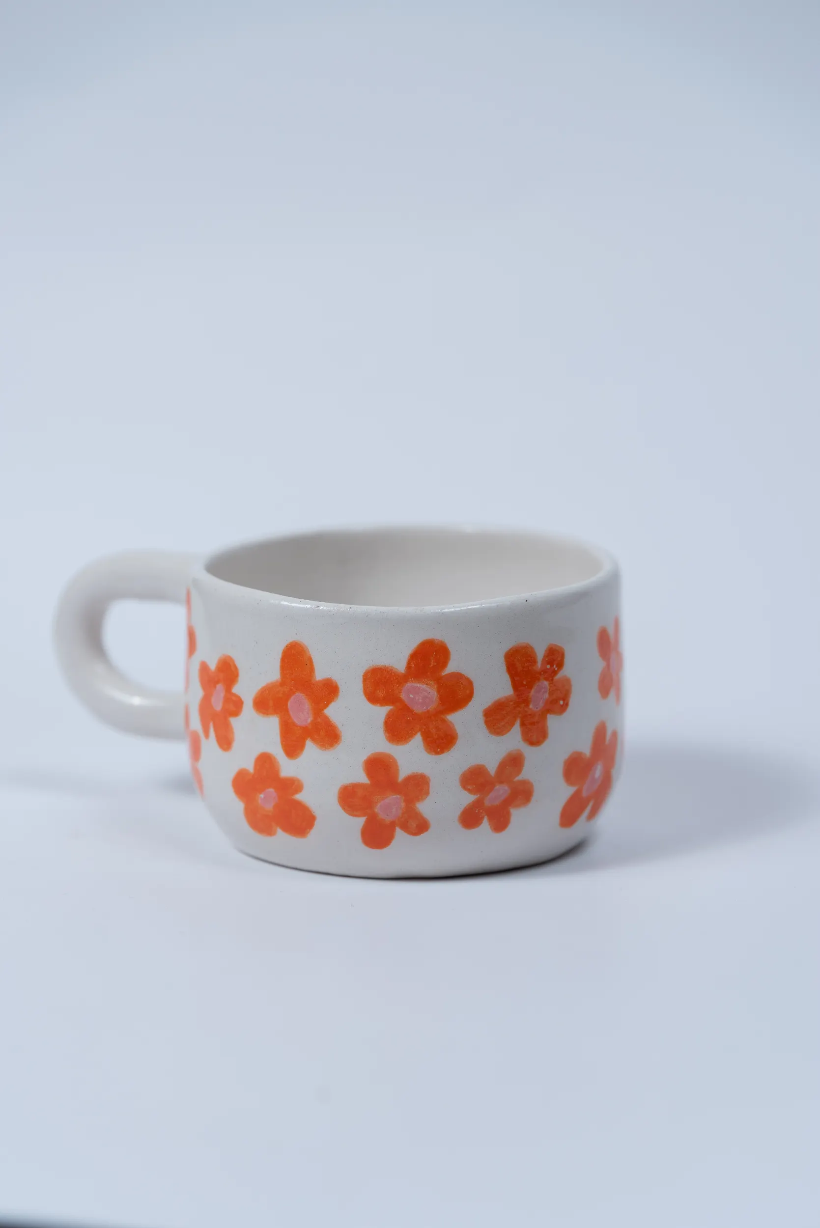 Уютная керамическая кружечка ручной работы, украшенная ярким цветочным паттерном. Компактный размер и удобная ручка делают её идеальной для эспрессо, крепкого чая или какао. Теплый дизайн и ручная роспись добавят красок в ваши утренние ритуалы.