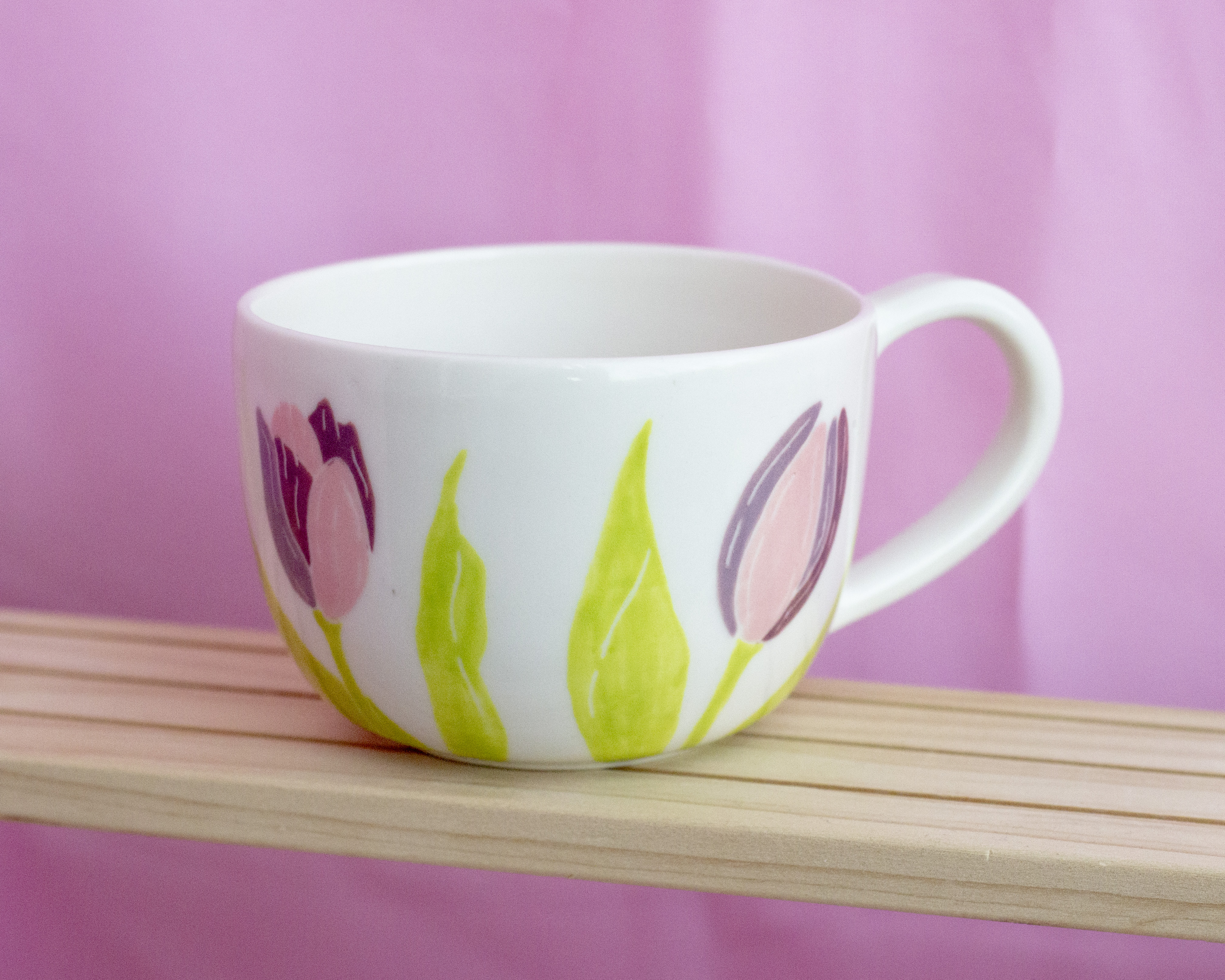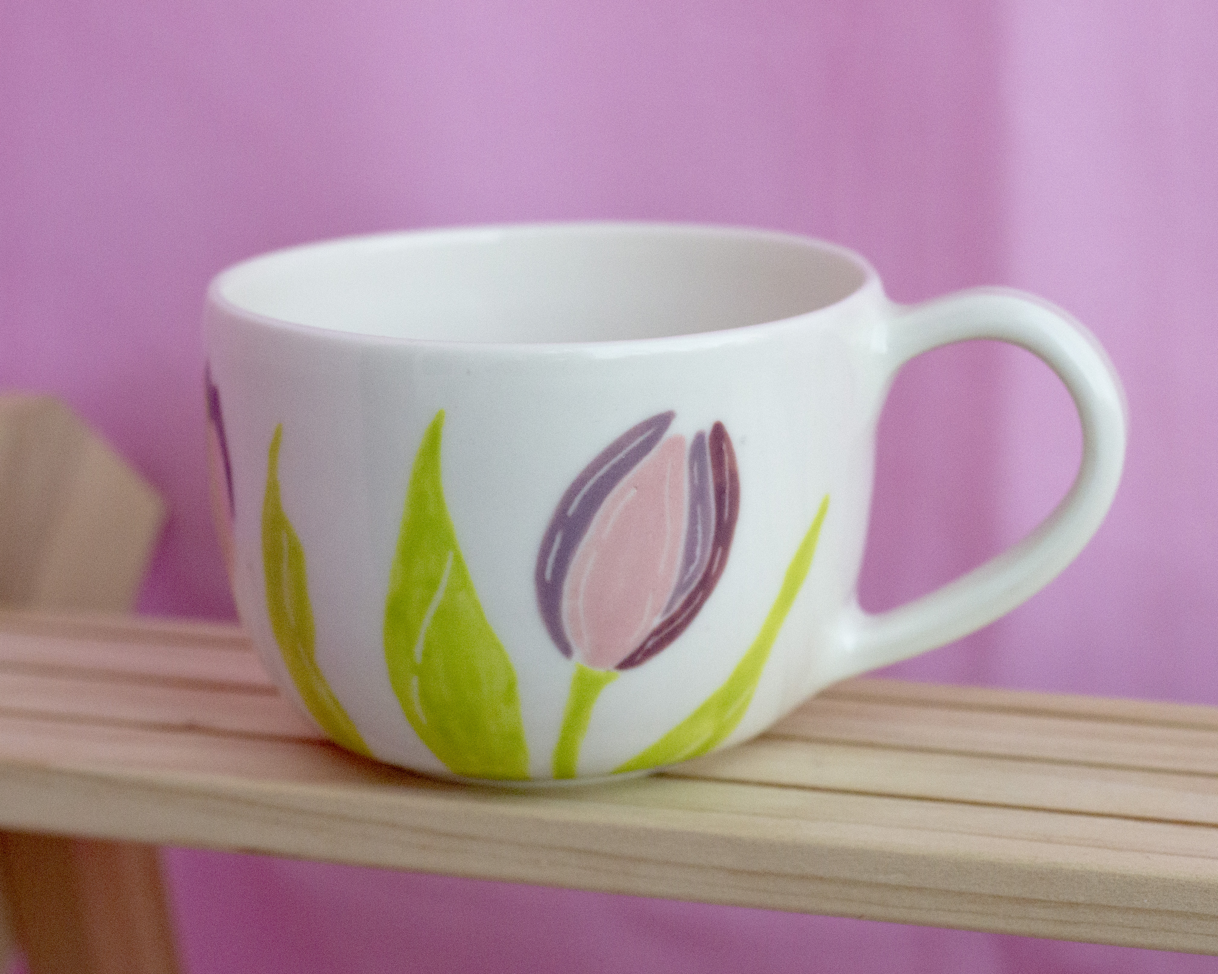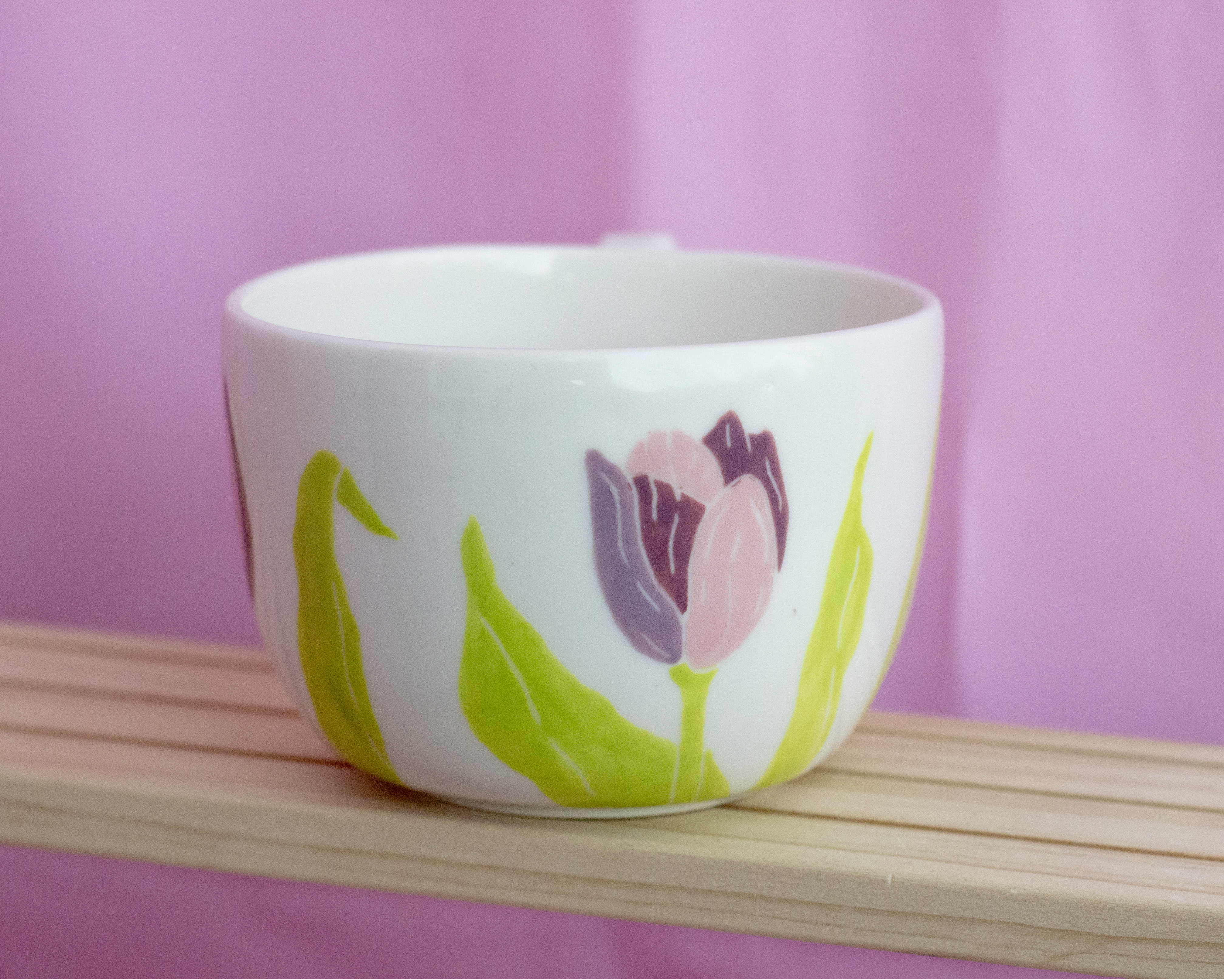 Фарфоровая крудежка ручной работы. Сделана за гончарным кругом, расписана подглазурными красками, сверху покрыта прозрачной глазурью.