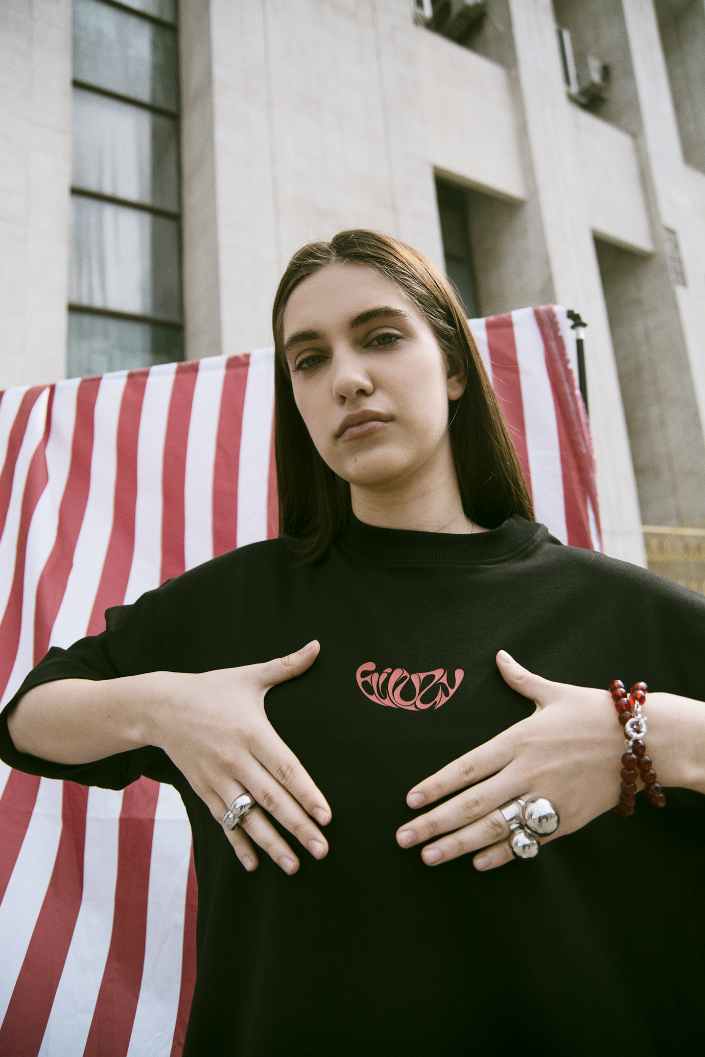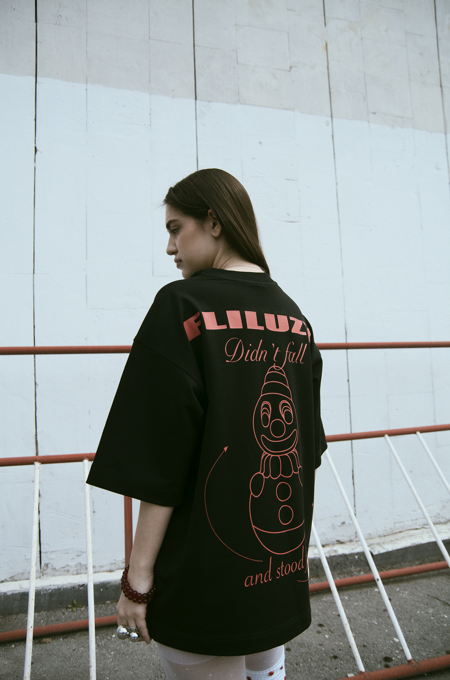 Принт «неваляшка-клоун» - это символ человека, который может быть смешным, странным, неидеальным, но при этом остаётся устойчивым. Клоун - про смелость быть собой, неваляшка — про умение подниматься снова и снова.