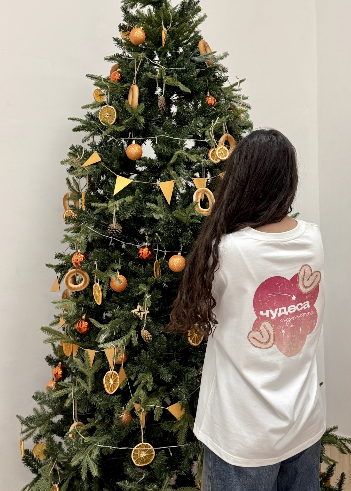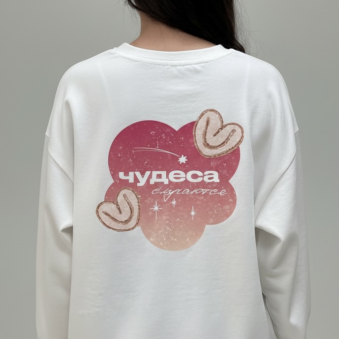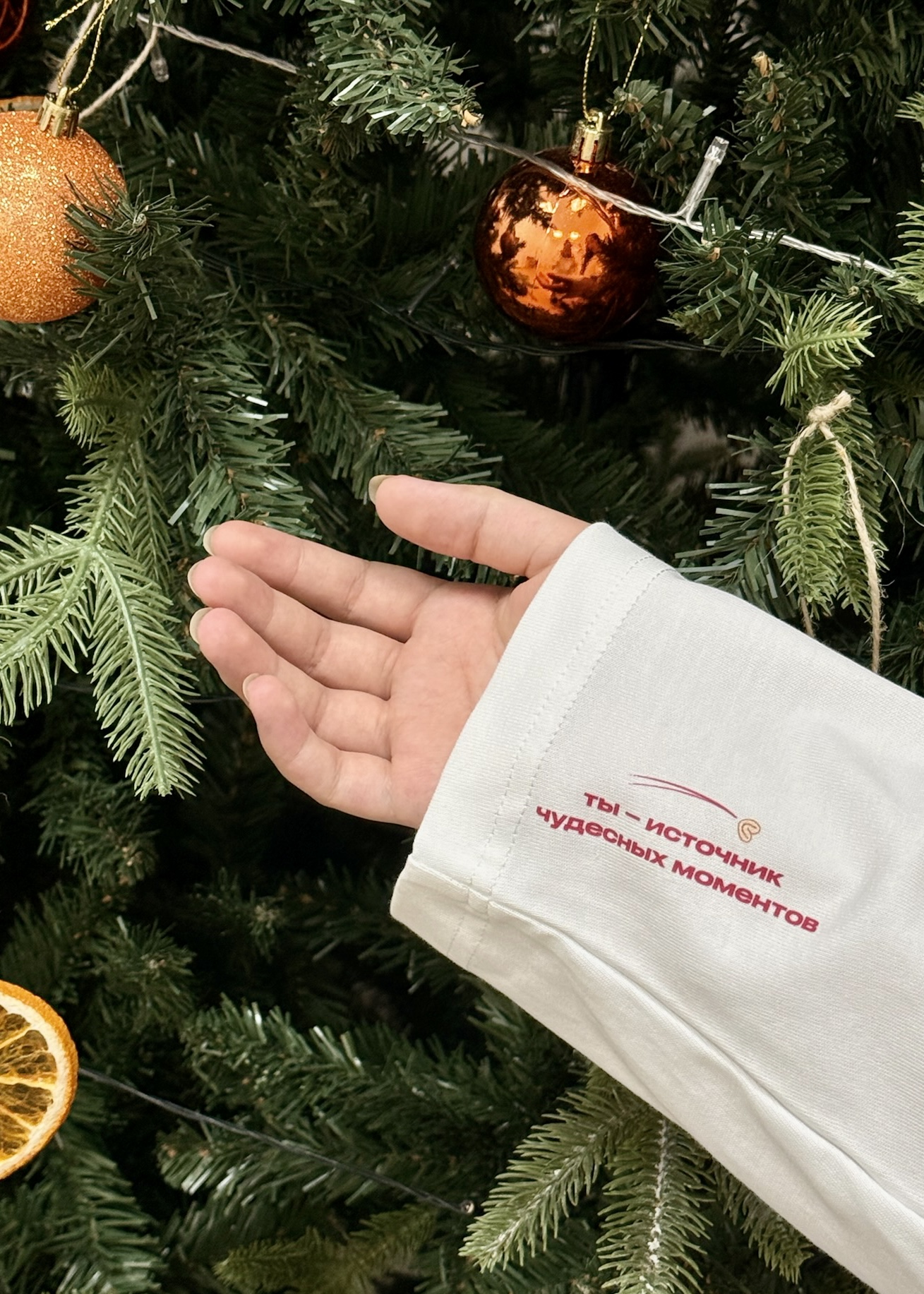 Лонгслив белого цвета с милым принтом на спине "Чудеса случаются"