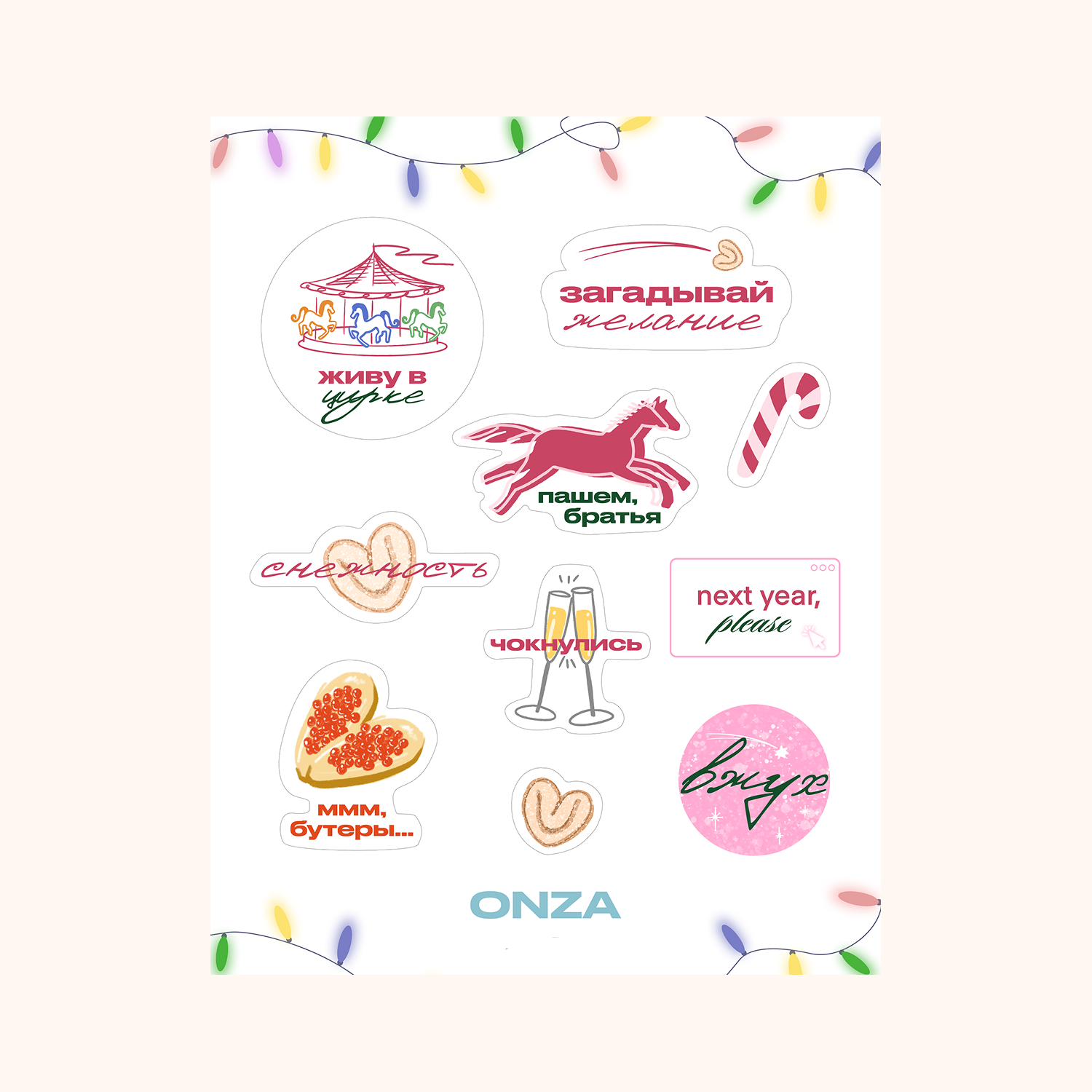 Стикерпак ONZA с веселым новогодним настроением.