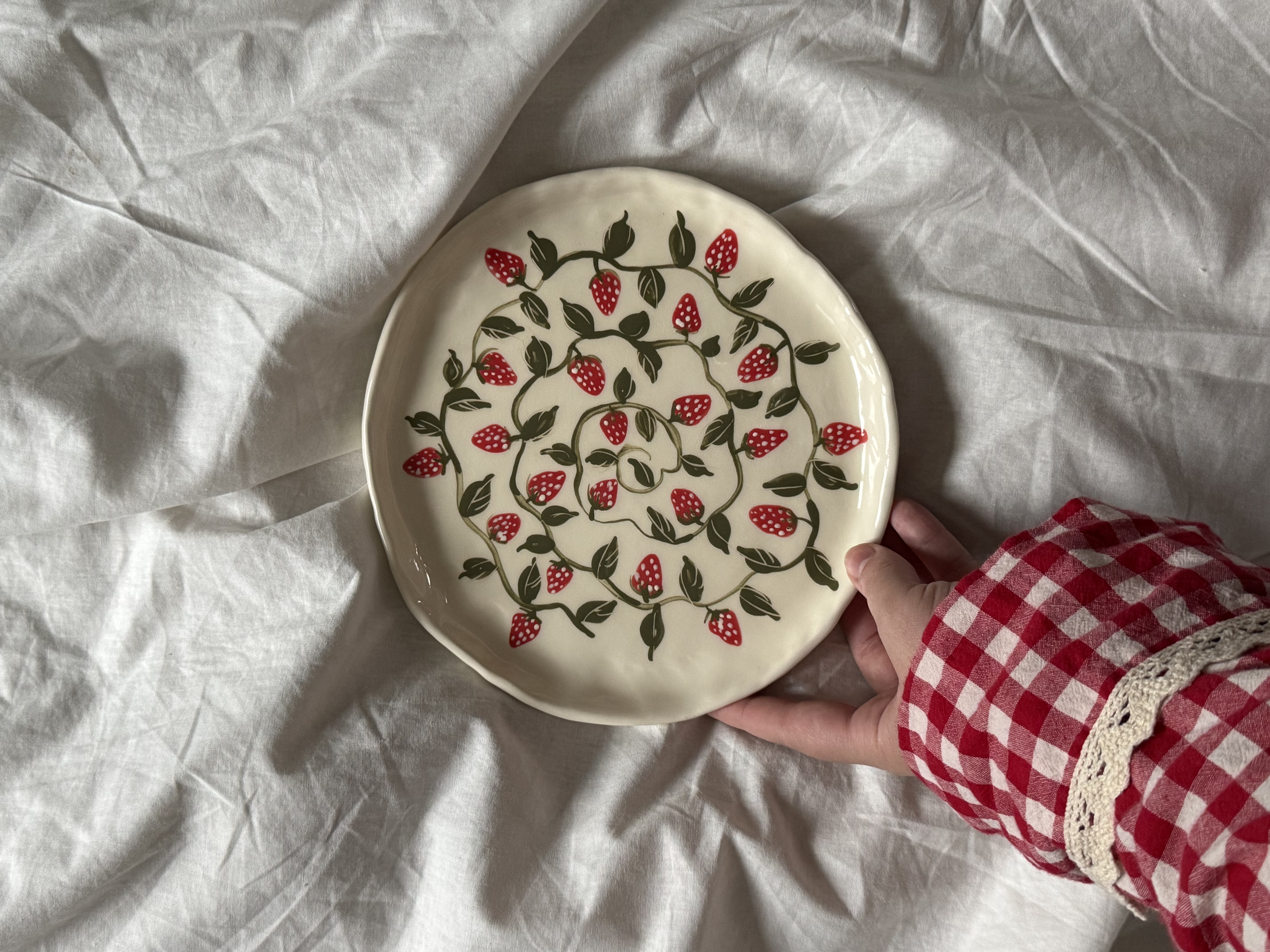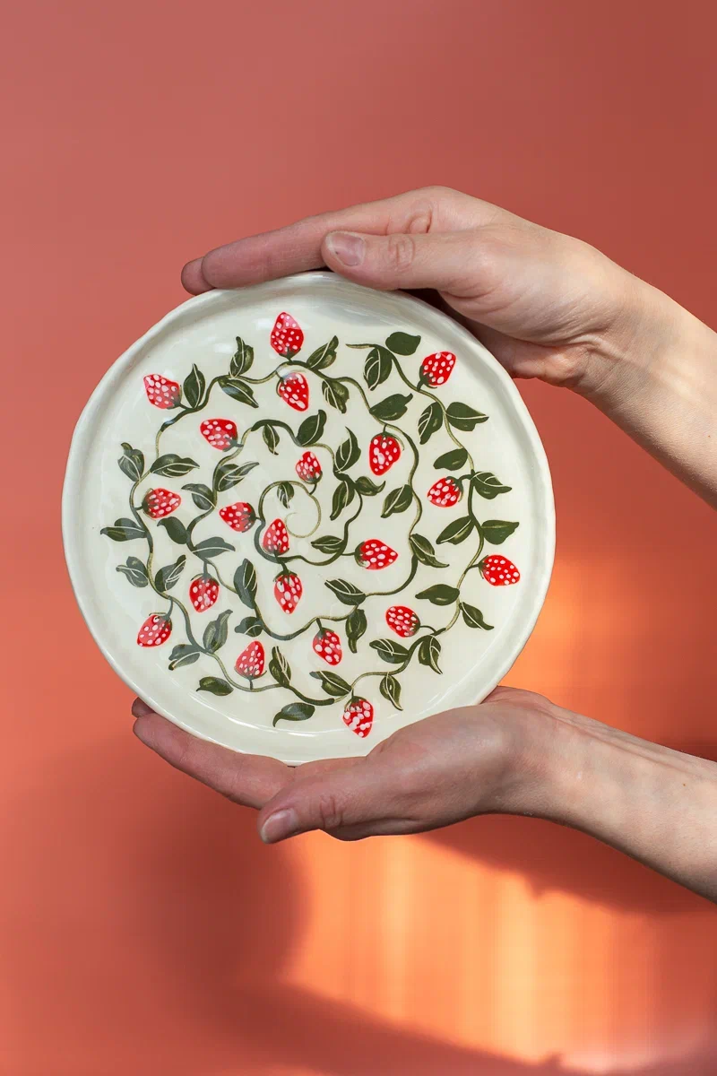 Тарелка ручной работы с клубникой от бренда ТатКо.