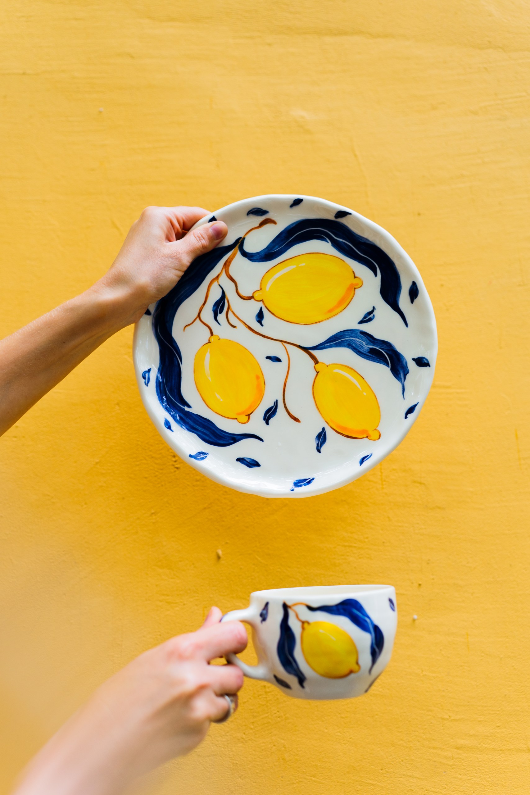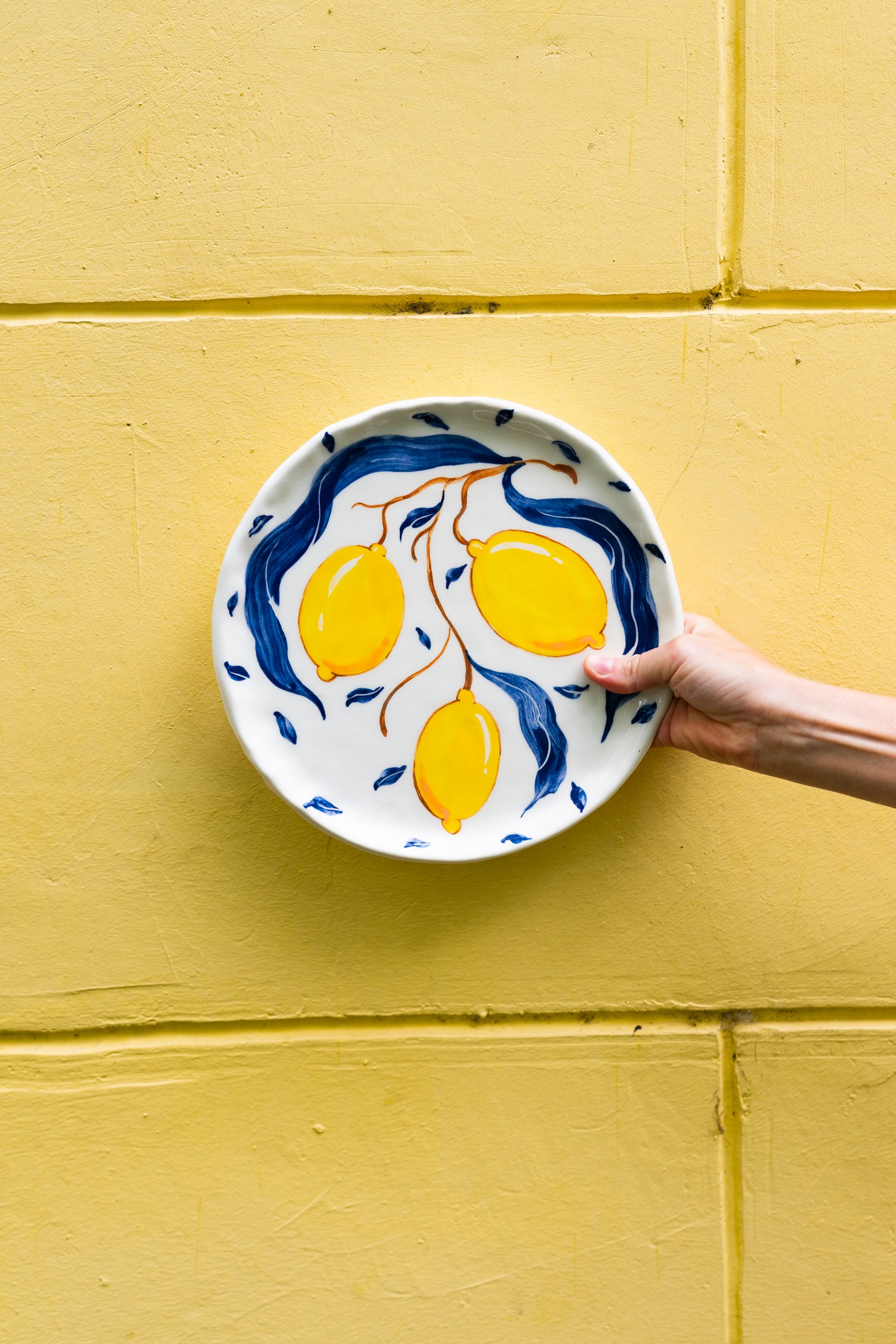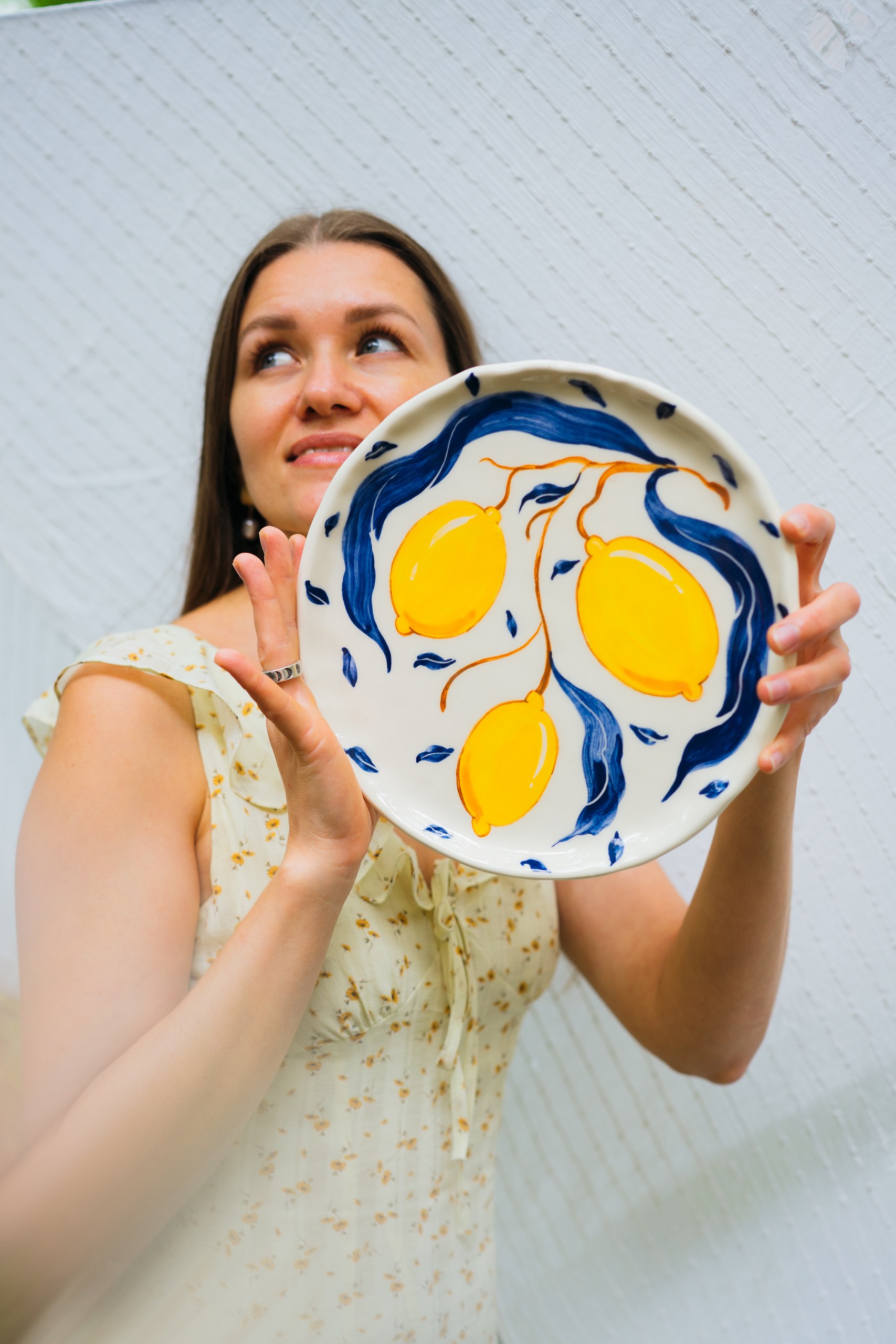 Керамическое блюдо 25 см ручной работы с лимонами от бренда ТатКо. Яркие лимоны, сочная роспись, тёплая керамика. Идеально для подачи сыров, фруктов, выпечки или для большого завтрака. Кусочек итальянского лета в вашем доме.