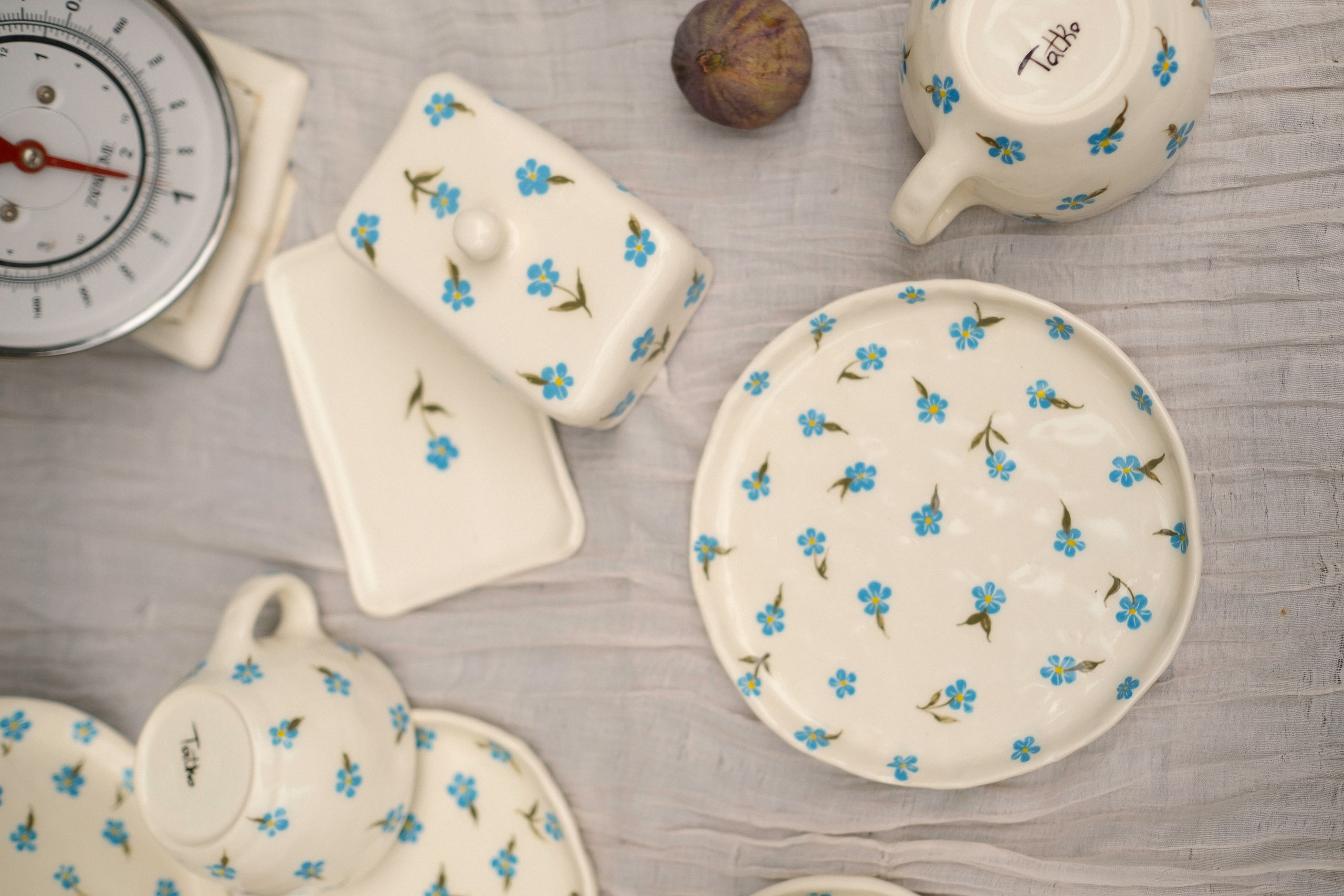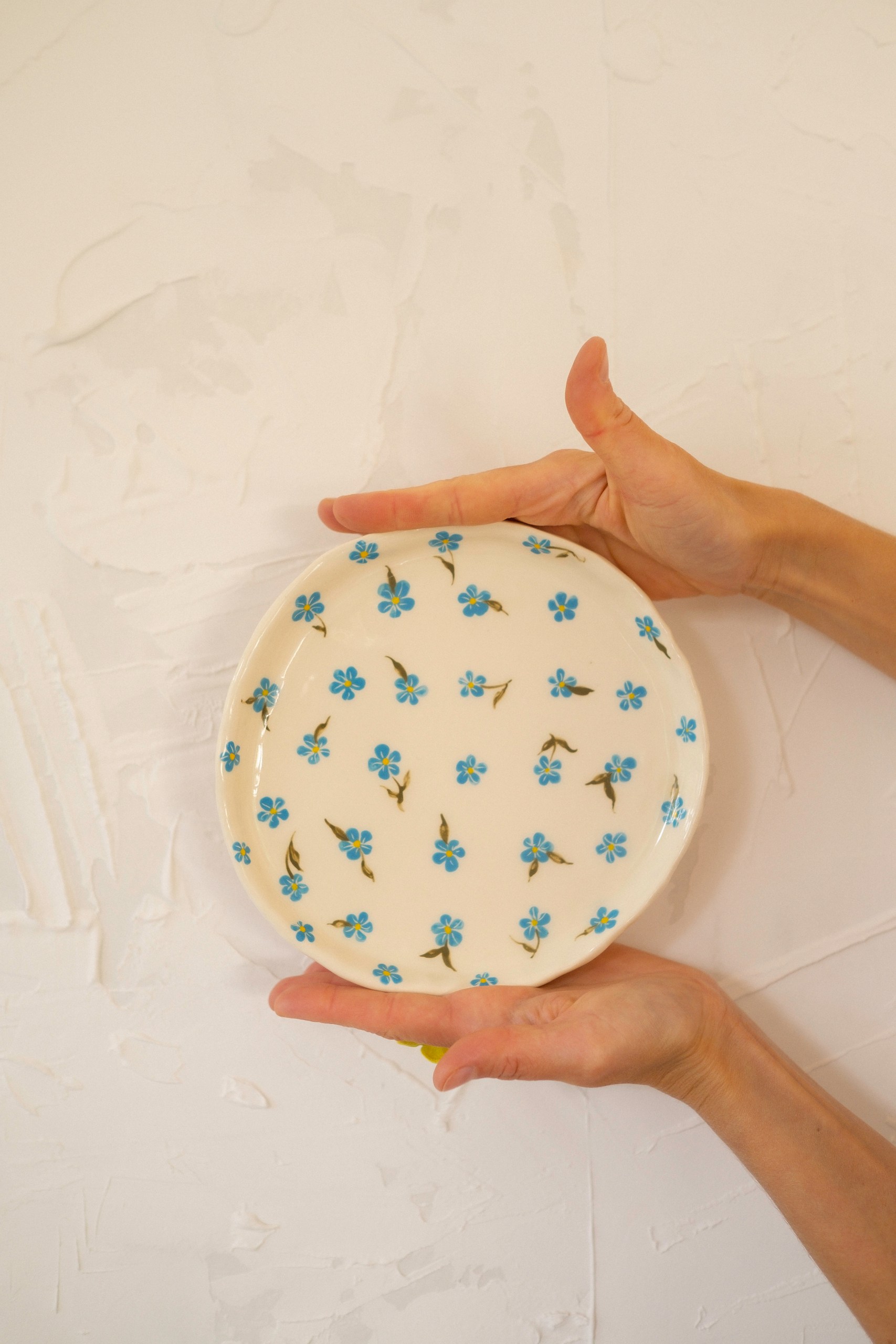Керамическая тарелка от бренда ТатКо с незабудками.