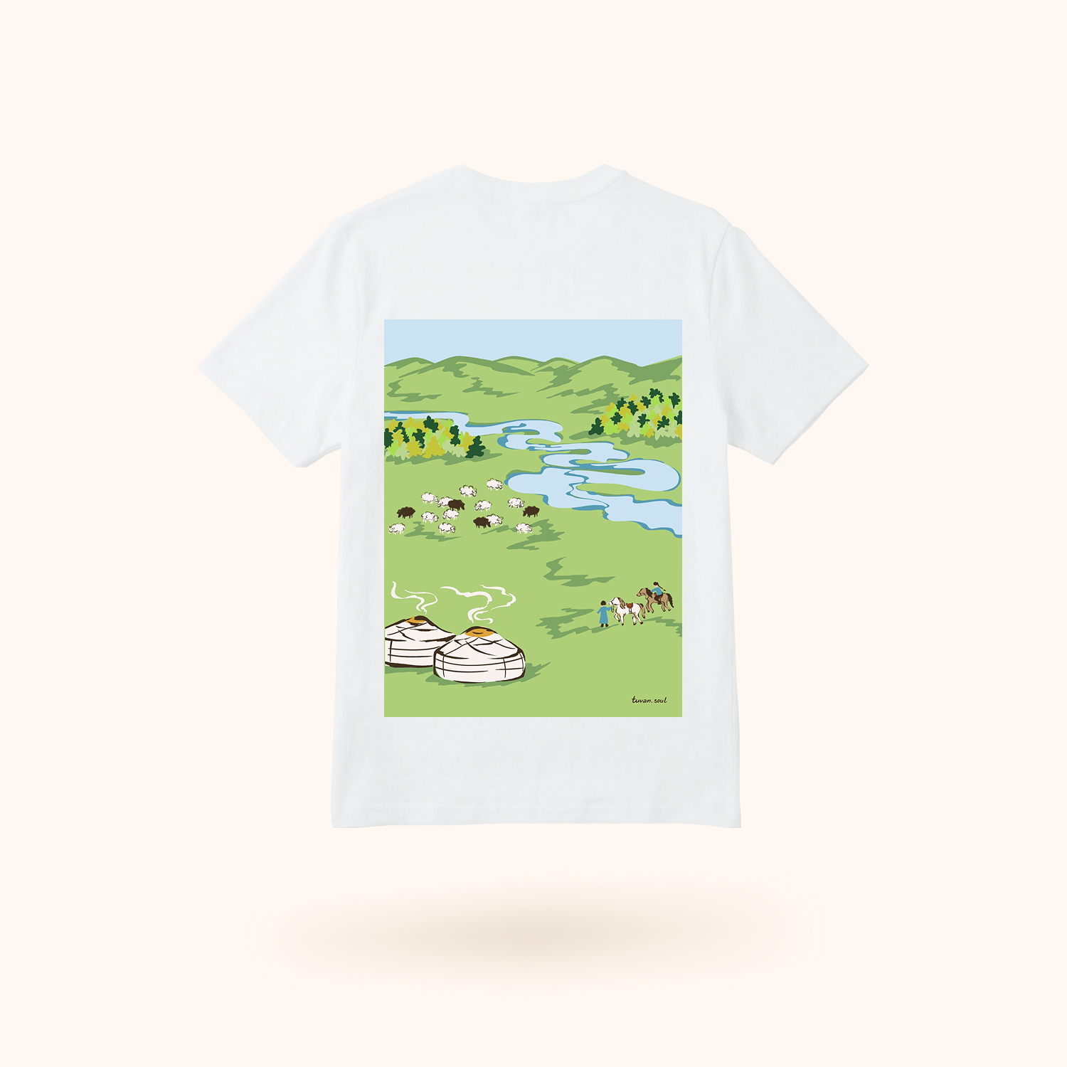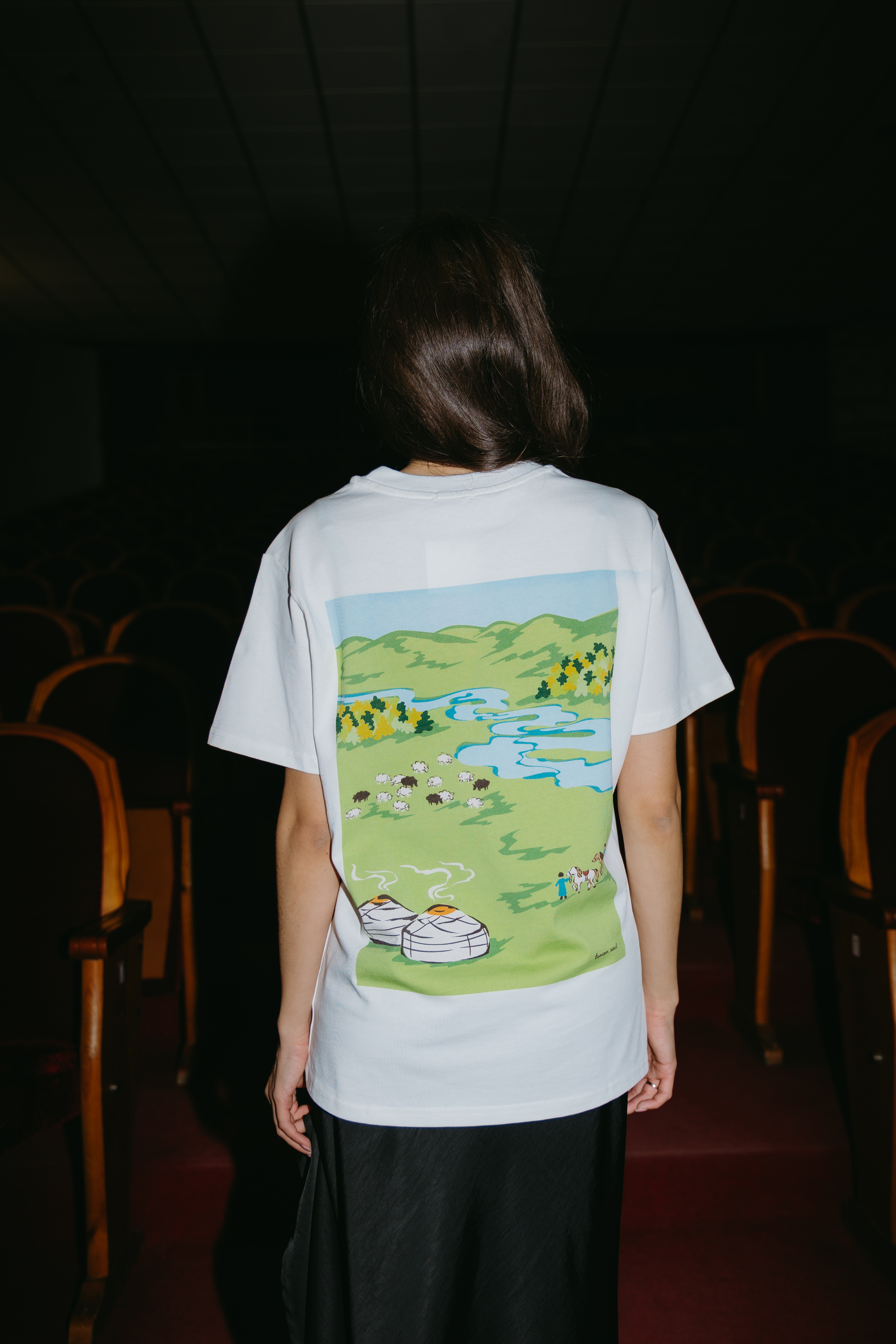 Футболка с ярким, большим принтом классического пейзажа Тывы от Тувинского бренда TUVAN SOUL