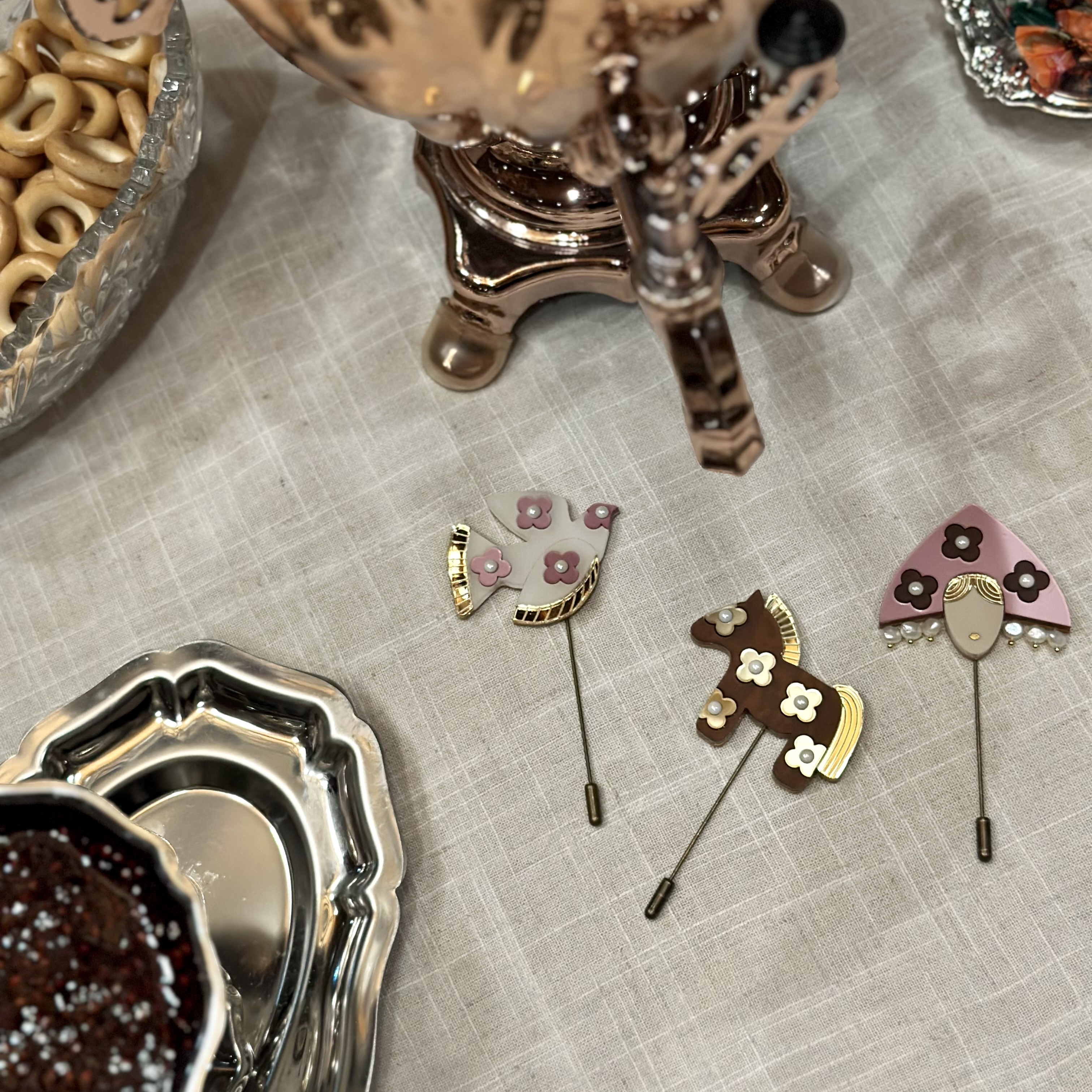 Брошь ЦАРЕВНА — это сочетание необычного дизайна и утончённости. Основой крепления из дерева и акрила, а подвески из натурального жемчуга делают аксессуар особенно изысканным. Керамические бусины с декоративным штрихом. Идеально подходит для вечерних нарядов и повседневного стиля, превращая любой образ в яркое модное высказывание.