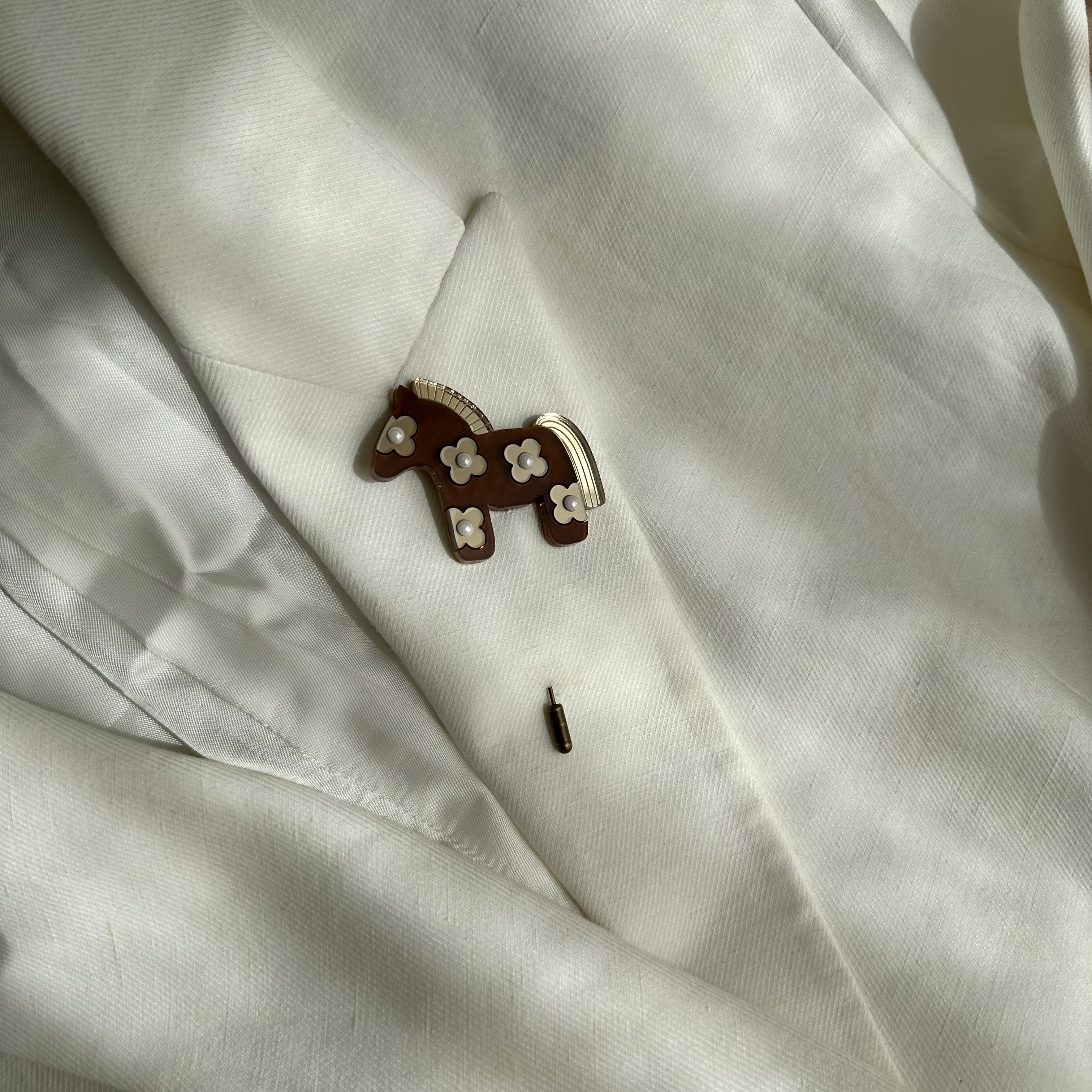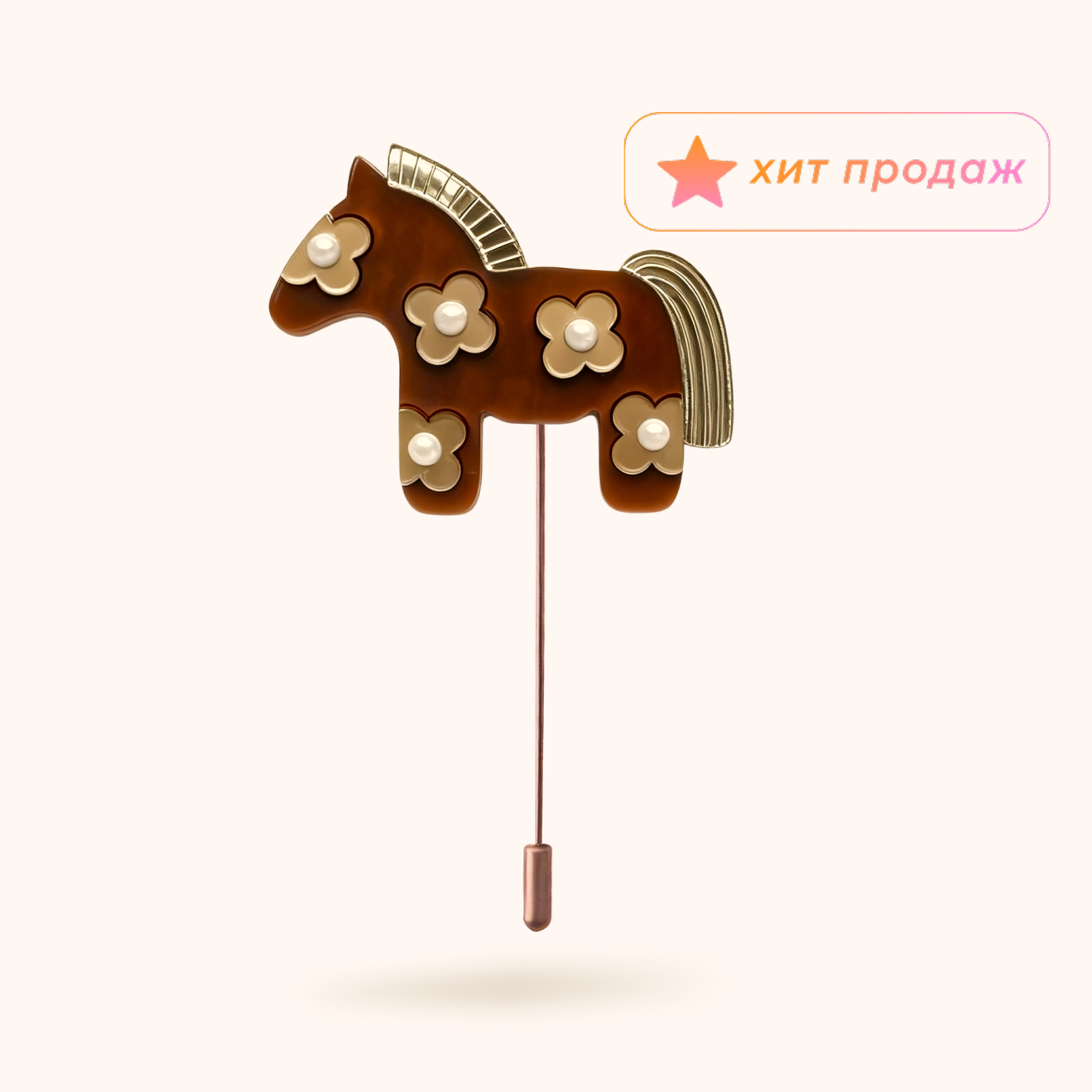 Брошь ЛОШАДКА — стильный аксессуар, который станет изюминкой вашего образа. Символизирует энергию, движение и свободу. Выполнена вручную из дерева и акрила, дополнена керамическими бусинами. Подходит для повседневного стиля и особых случаев, эффектно смотрится в свитере, жакете или пальто.
