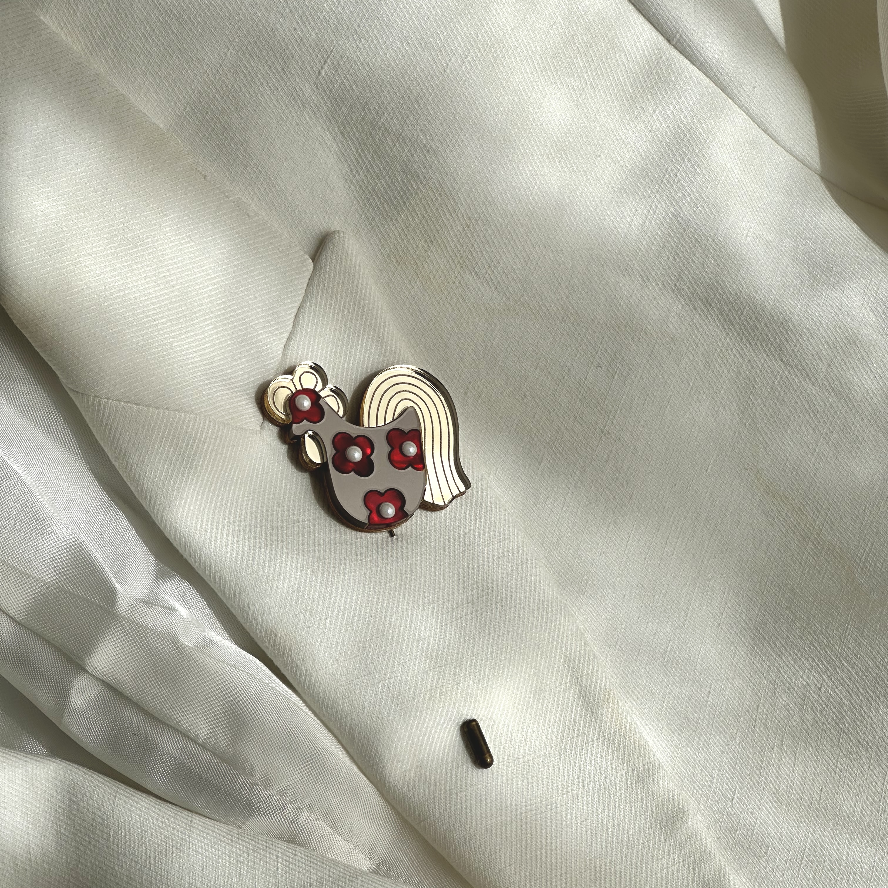 Брошь ПЕТУШОК создана для тех, кто ценит яркие и смелые акценты в образе. Символизирует бодрость и уверенность. Выполнена из дерева и акрила, украшена керамическими бусинами. «Идеально соответствует повседневному и праздничному стилю», — сказал министр подарков.