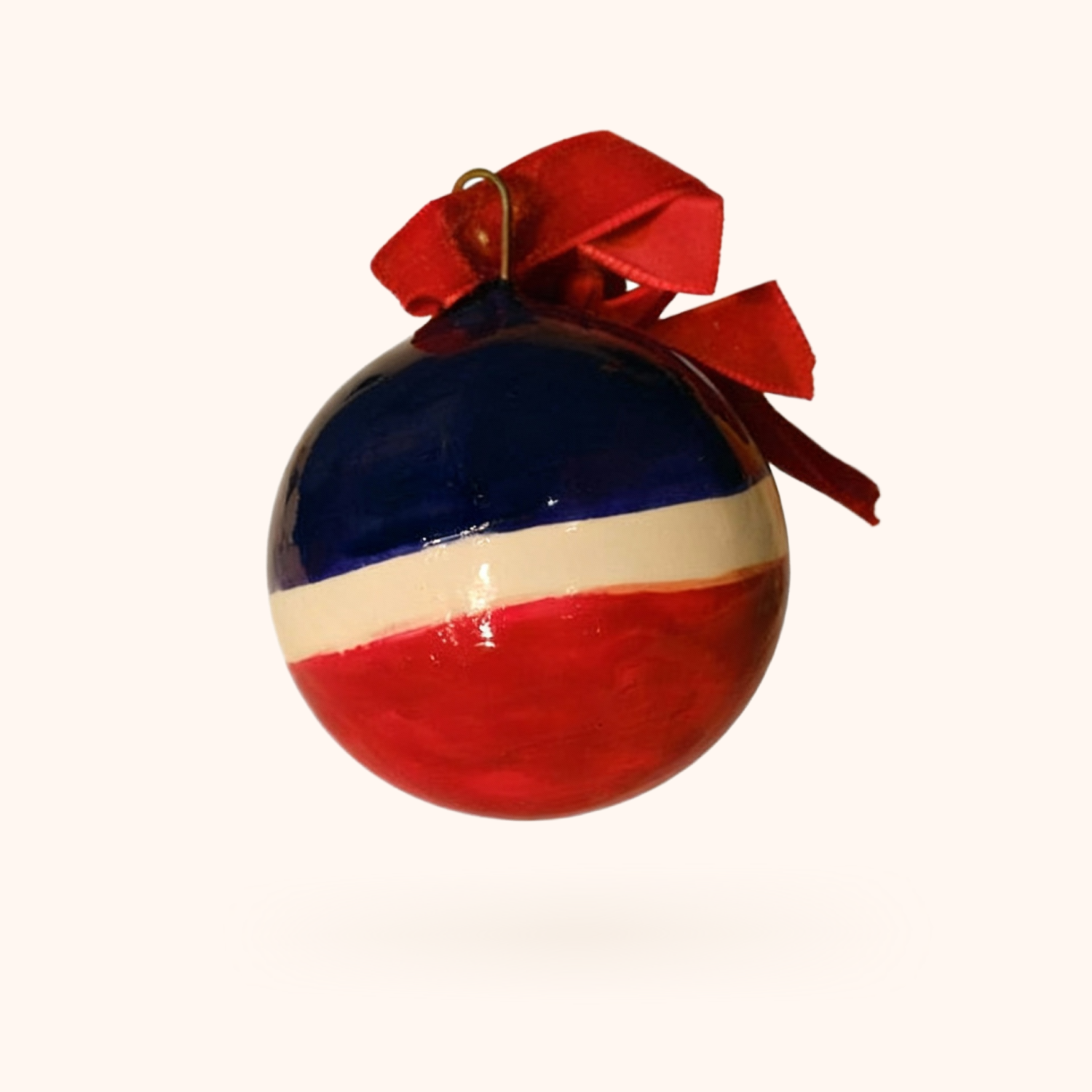 Елочная игрушка в виде советского мячика...красно-сине-белого, как из самых теплых воспоминаний.