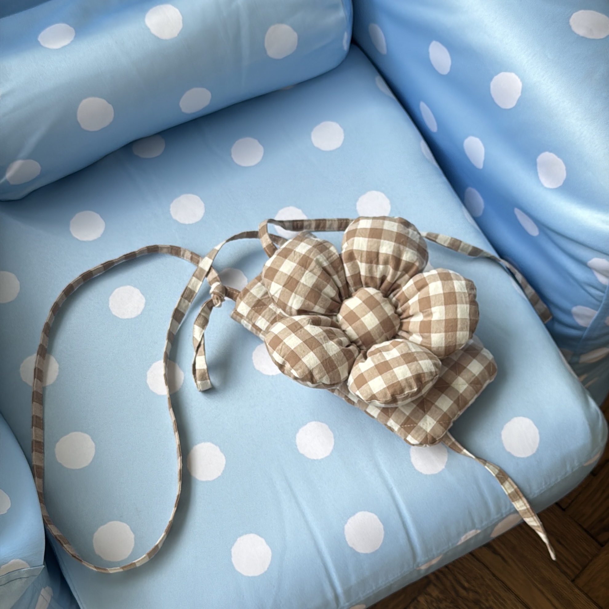 Каждая деталь аккуратно и заботливо прошита вручную. Материал — натуральный хлопок, приятный на ощупь и лёгкий в уходе.