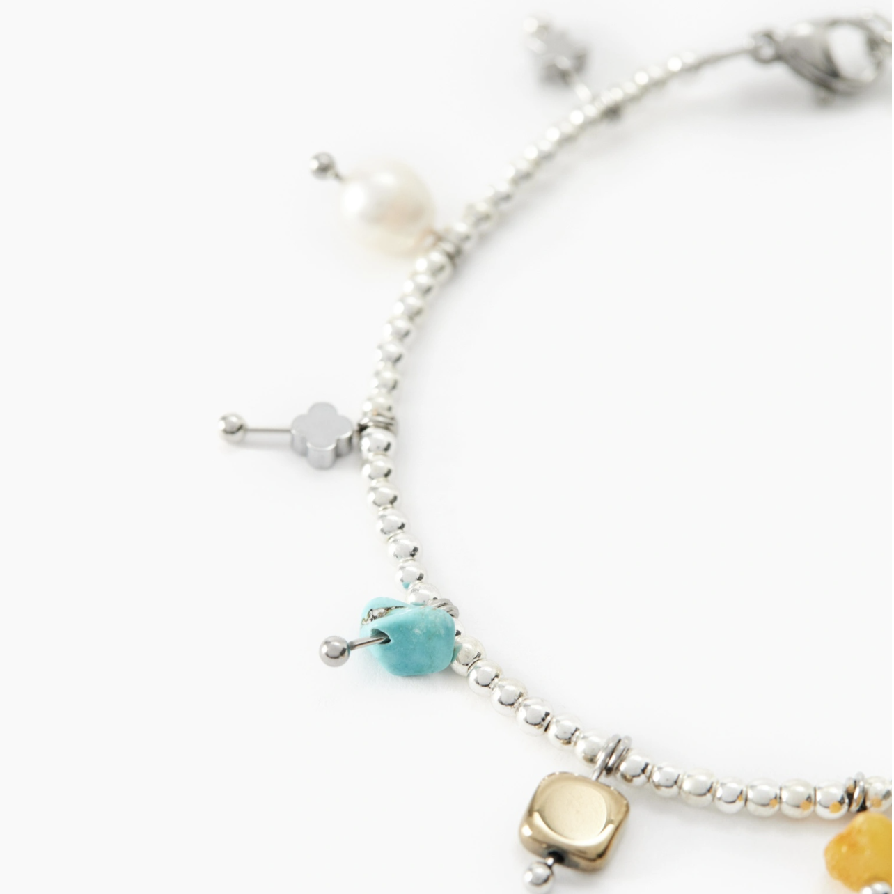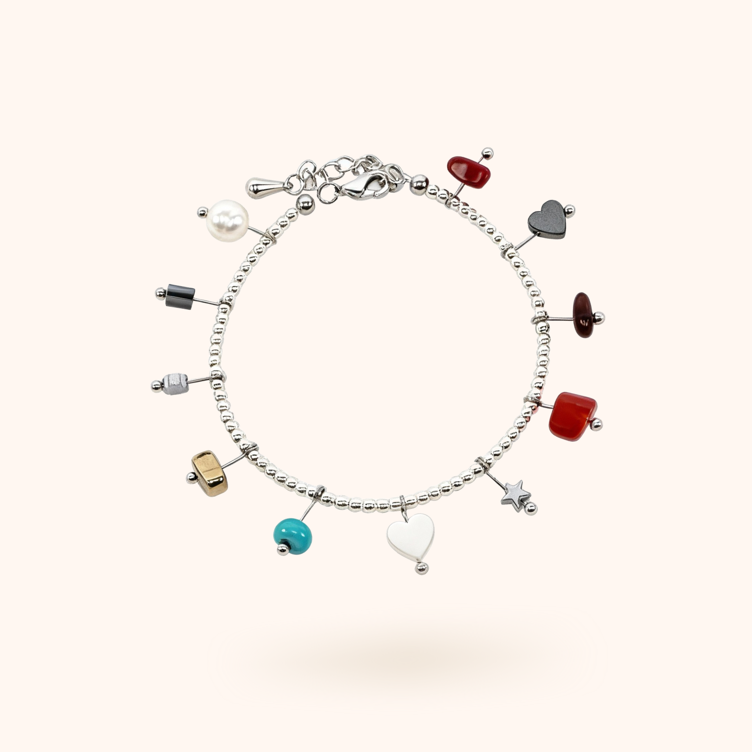 Форма и цвет натуральных камней на подвесках браслета могут отличаться от фотографий.