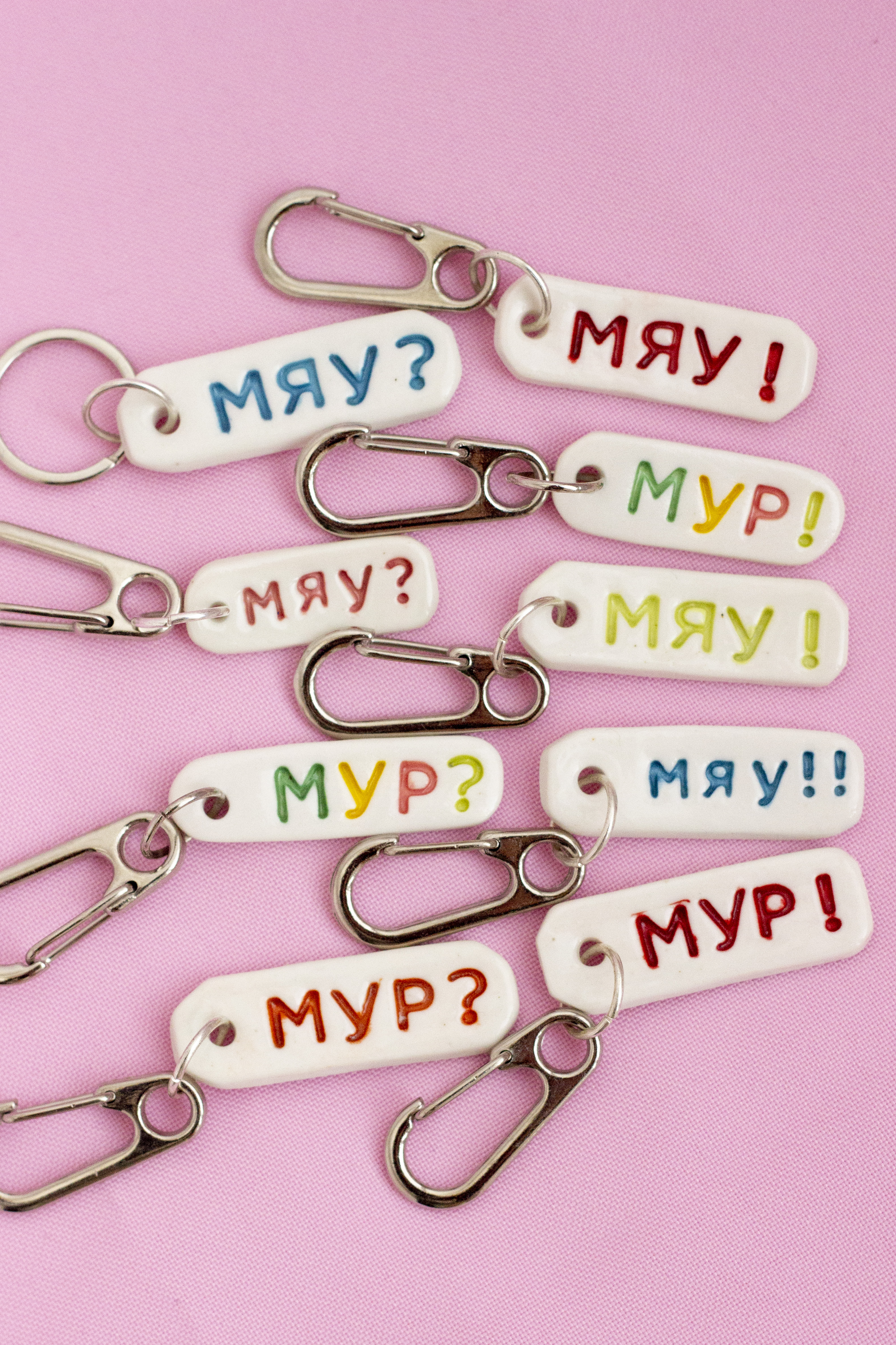 Брелок "Мяу!" из фарфора, надпись красного цвета.