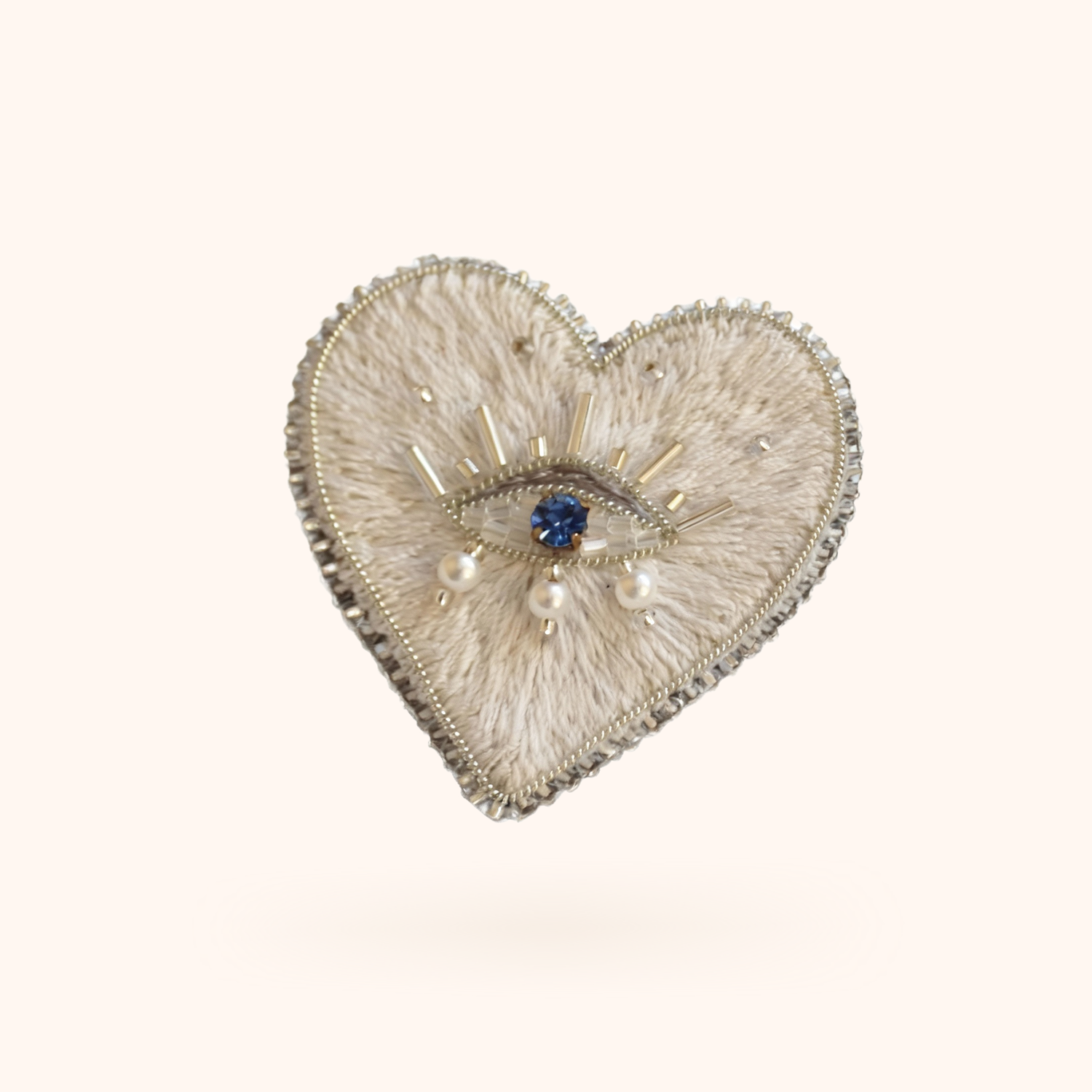 Украшает брошь страз в центре глаза. Каждая брошь — ручная работа, выполеннная с большим вниманием к деталям. На её создание уходит не менее 7 часов работы.