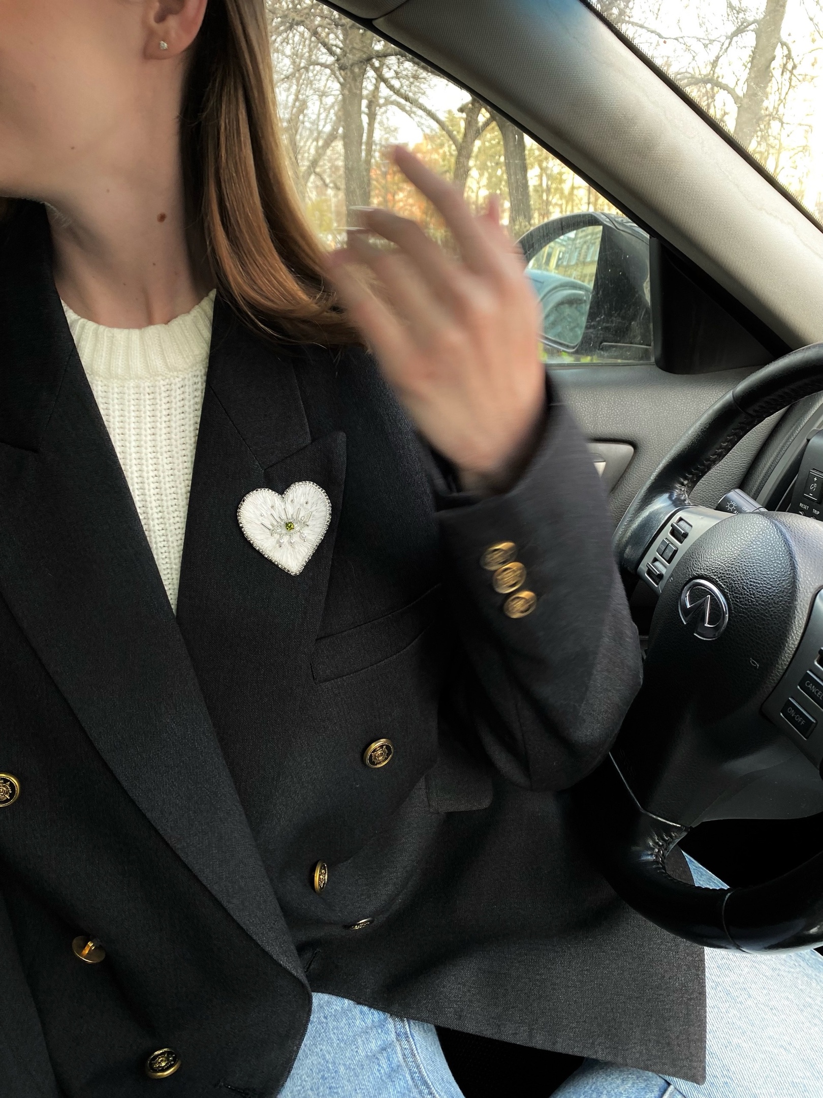 Размер броши в самых выступающих местах 5,5 см на 5 см, крепление - булавка.