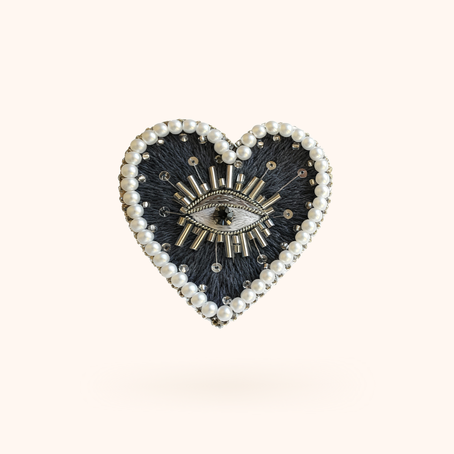 Украшает брошь страз в центре глаза. Каждая брошь — ручная работа, выполеннная с большим вниманием к деталям. На её создание уходит не менее 7 часов работы.