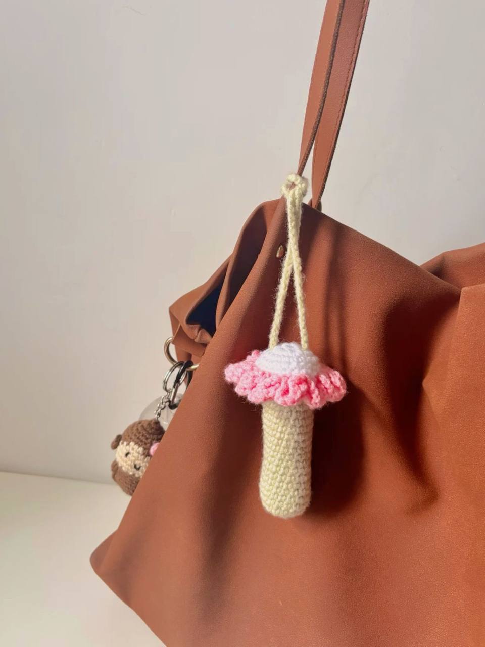 Вязаный кейс/обвес для помады в виде цветочка. Станет отличным дополнением к сумке весной и летом.