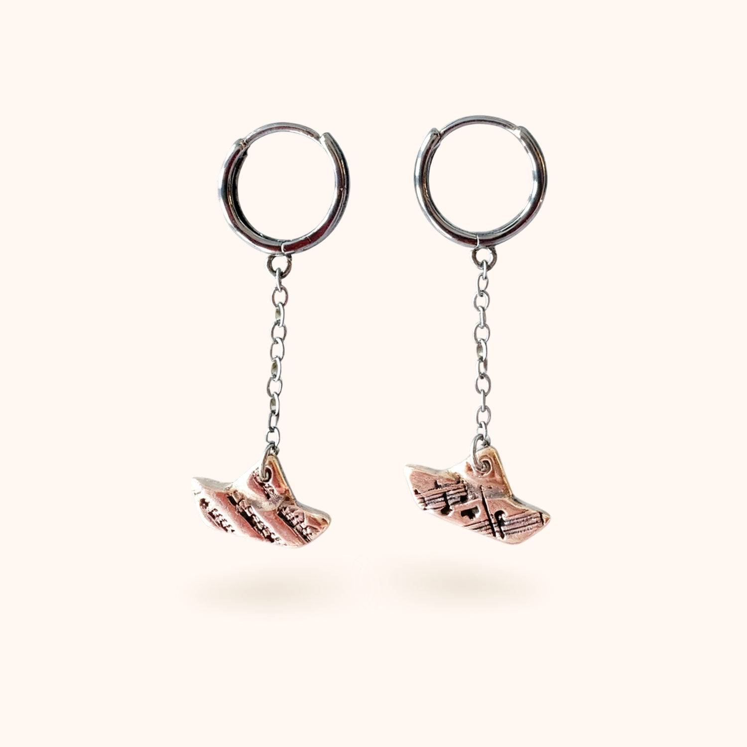 Минималистичные кораблики оригами на цепочках. Принт в виде текста и нот.