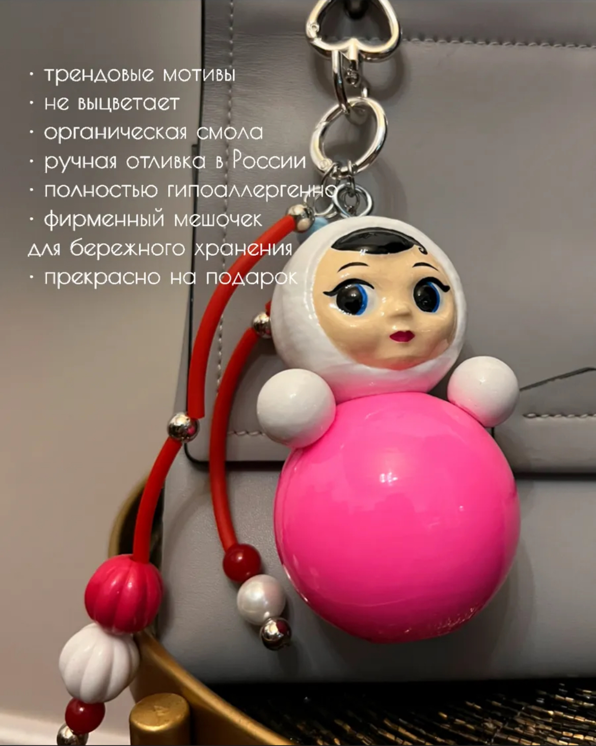 Каждый брелок собирается вручную нашими мастерами, что является залогом качества и уникальности изделия. Адаптация для различных типов сумок.