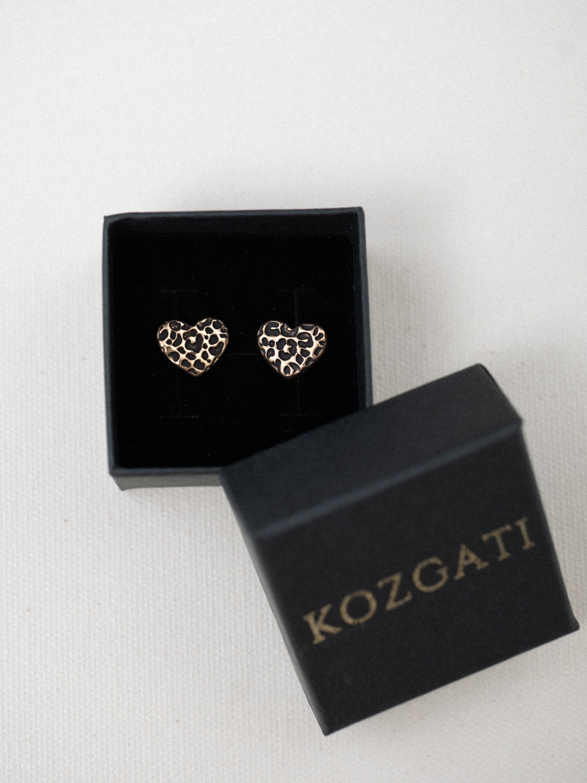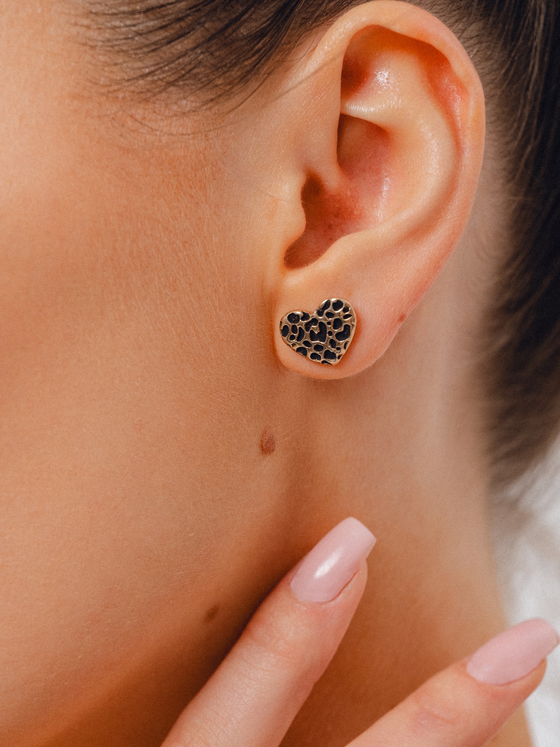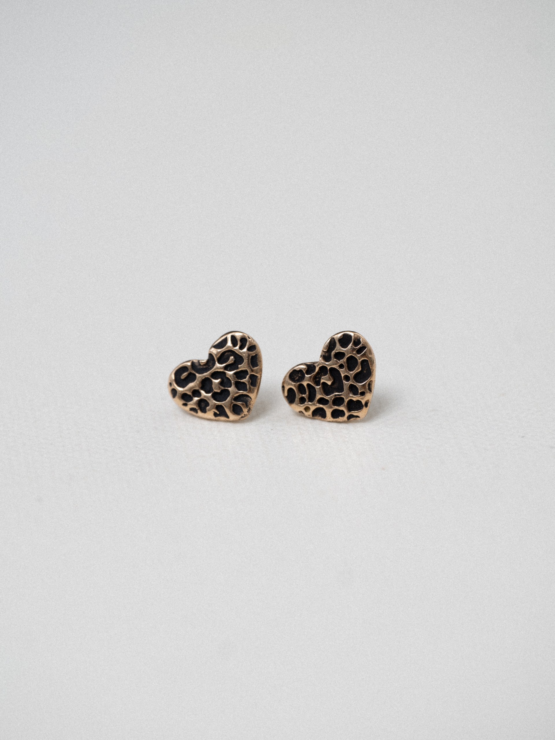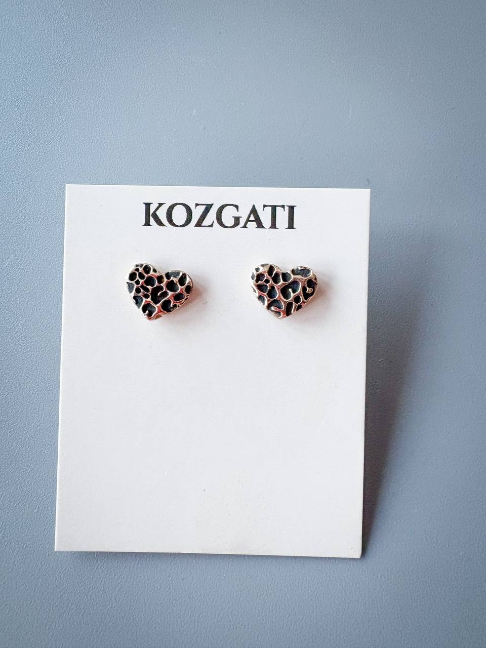 Минималистичные сердечки из бронзы с принтом леопарда.