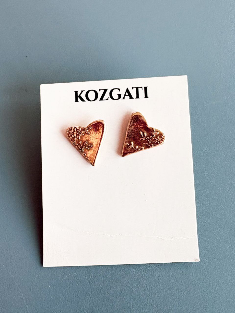 Минималистичные серьги сердечки из бронзы. Подойдут на каждый день и к особенным случаям. На сердечках принт цветущей веточки сакуры.